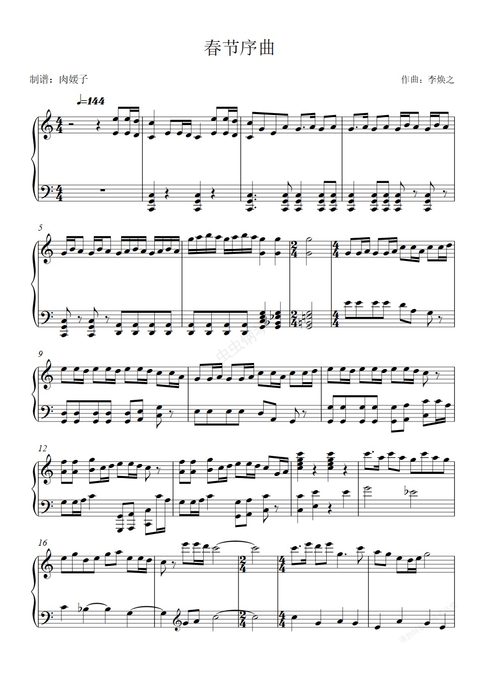 钢琴谱:【钢琴】《春节序曲》 过年必备