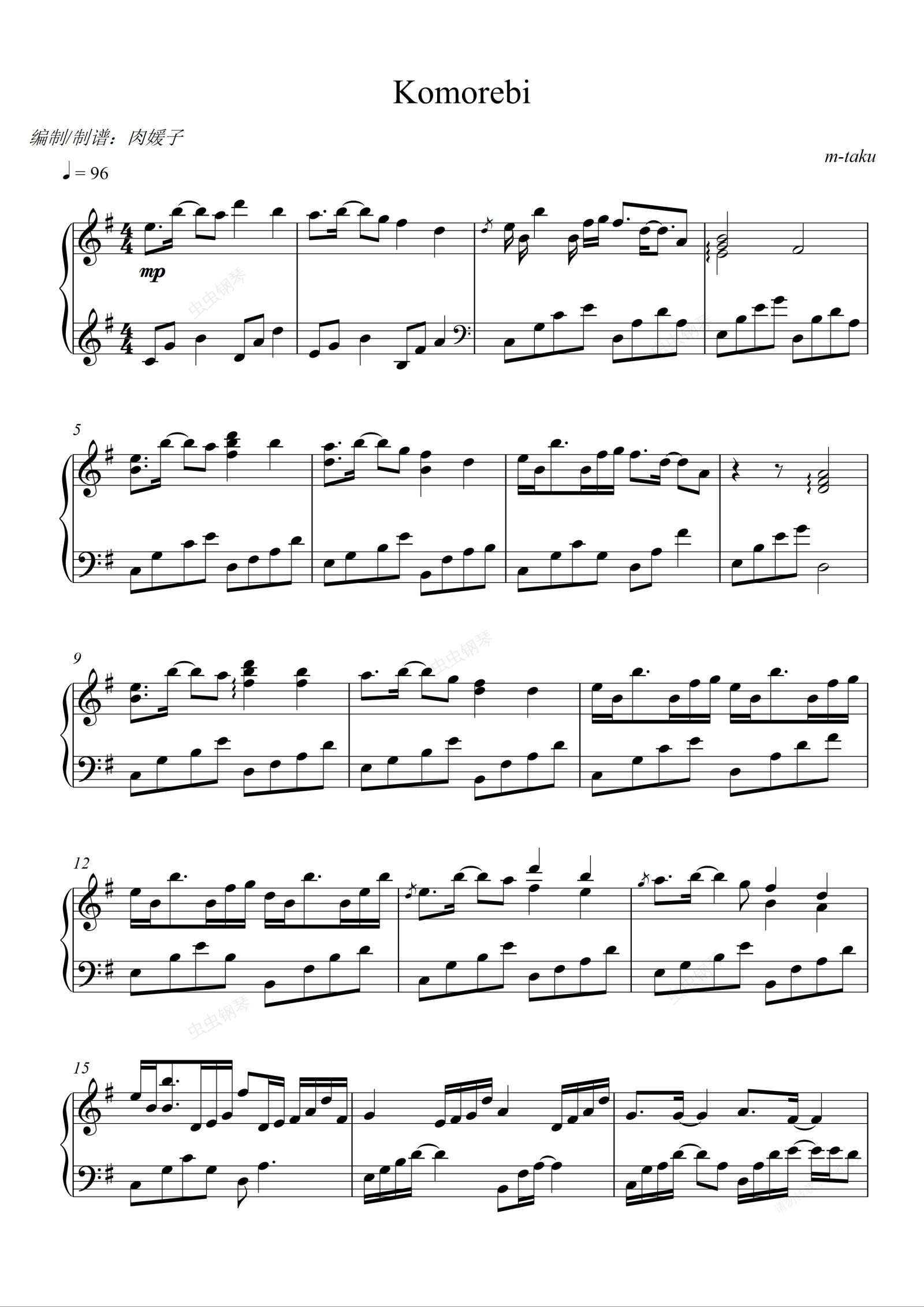 钢琴谱:好听治愈|Komorebi(钢琴独奏)
