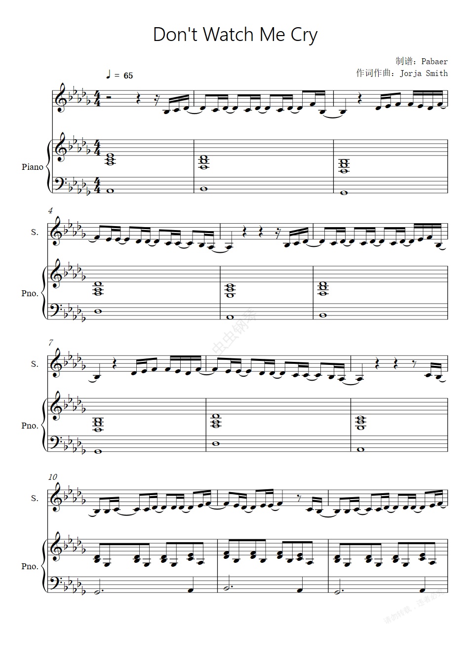 钢琴谱:Don't Watch Me Cry(弹唱版)