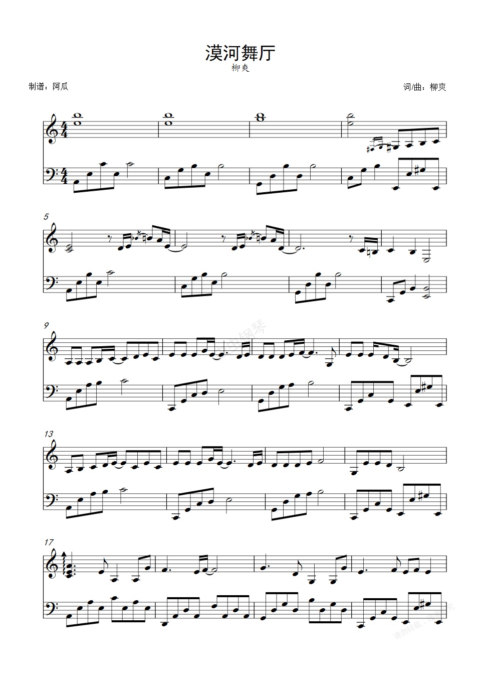 钢琴谱:漠河舞厅-C调简易