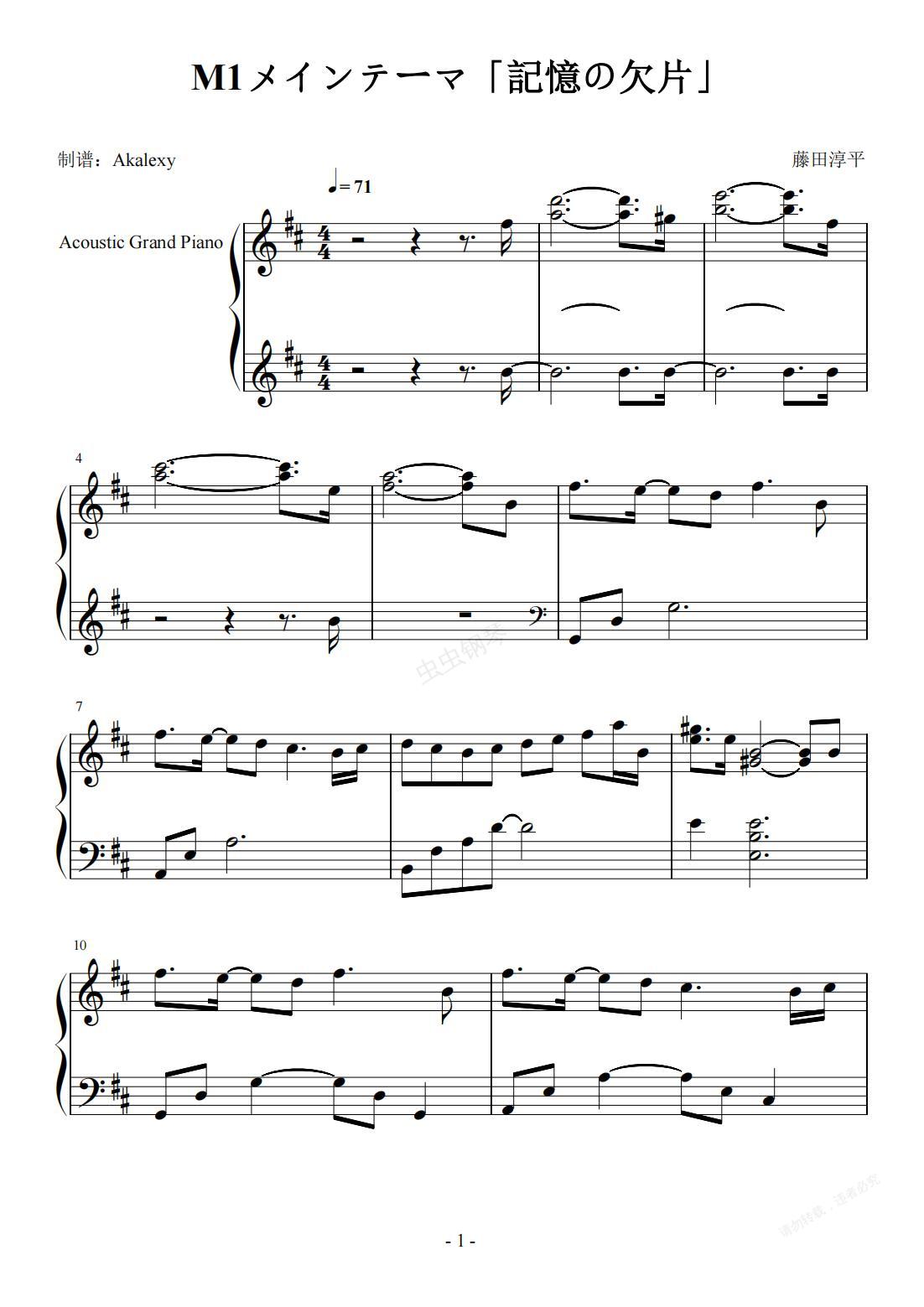 钢琴谱:虫之歌M1メインテーマ「記憶の欠片」