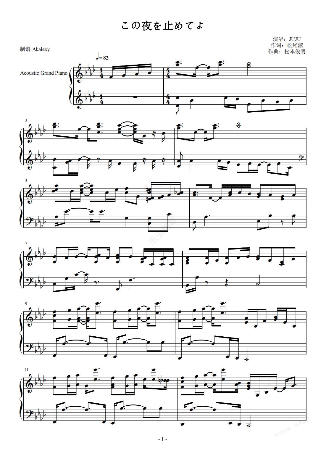 钢琴谱:与魔鬼缔结契约之女《この夜を止めてよ》