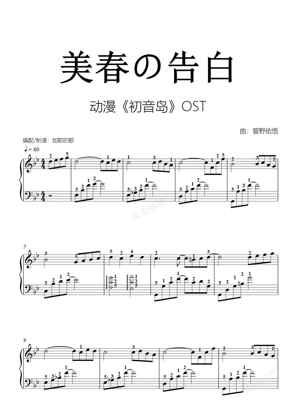 钢琴谱:美春の告白-动漫《初音岛》OST