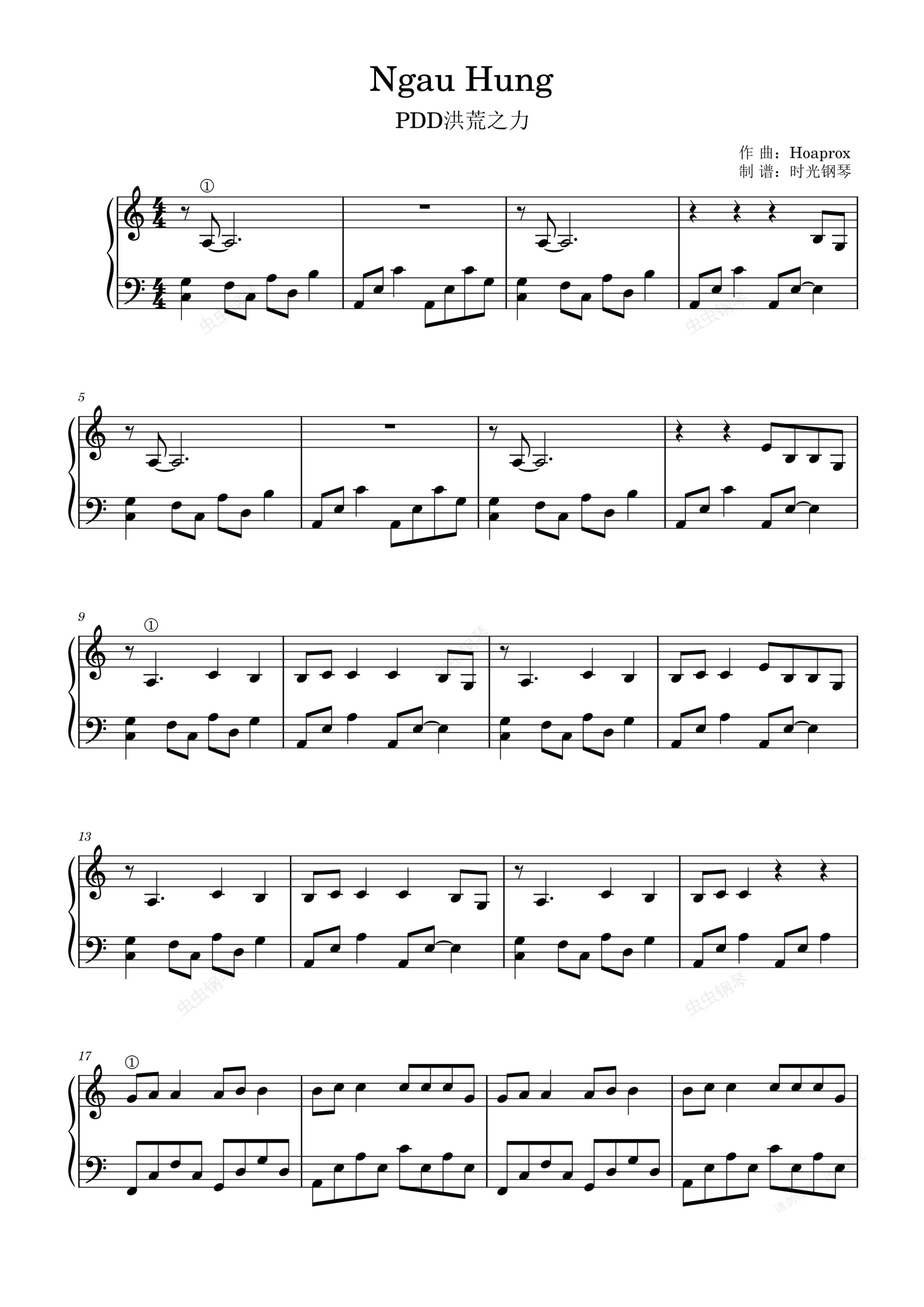 钢琴谱:Ngau Hung(PDD洪荒之力)