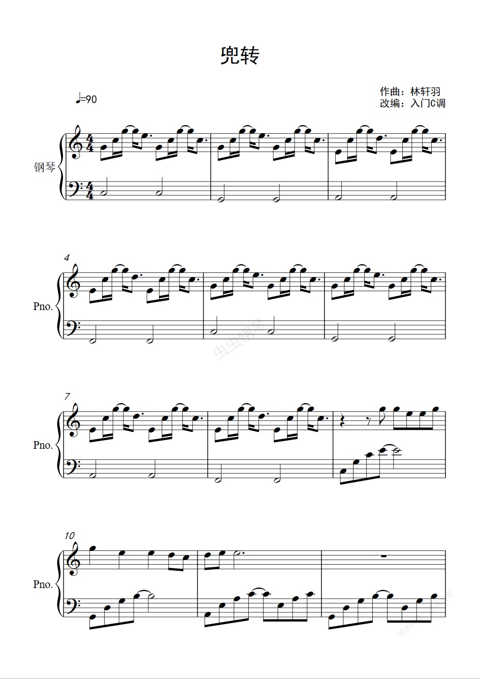 钢琴谱:《HIStory4近距离爱上你》片头曲《兜转》陈势安入门C调简单版