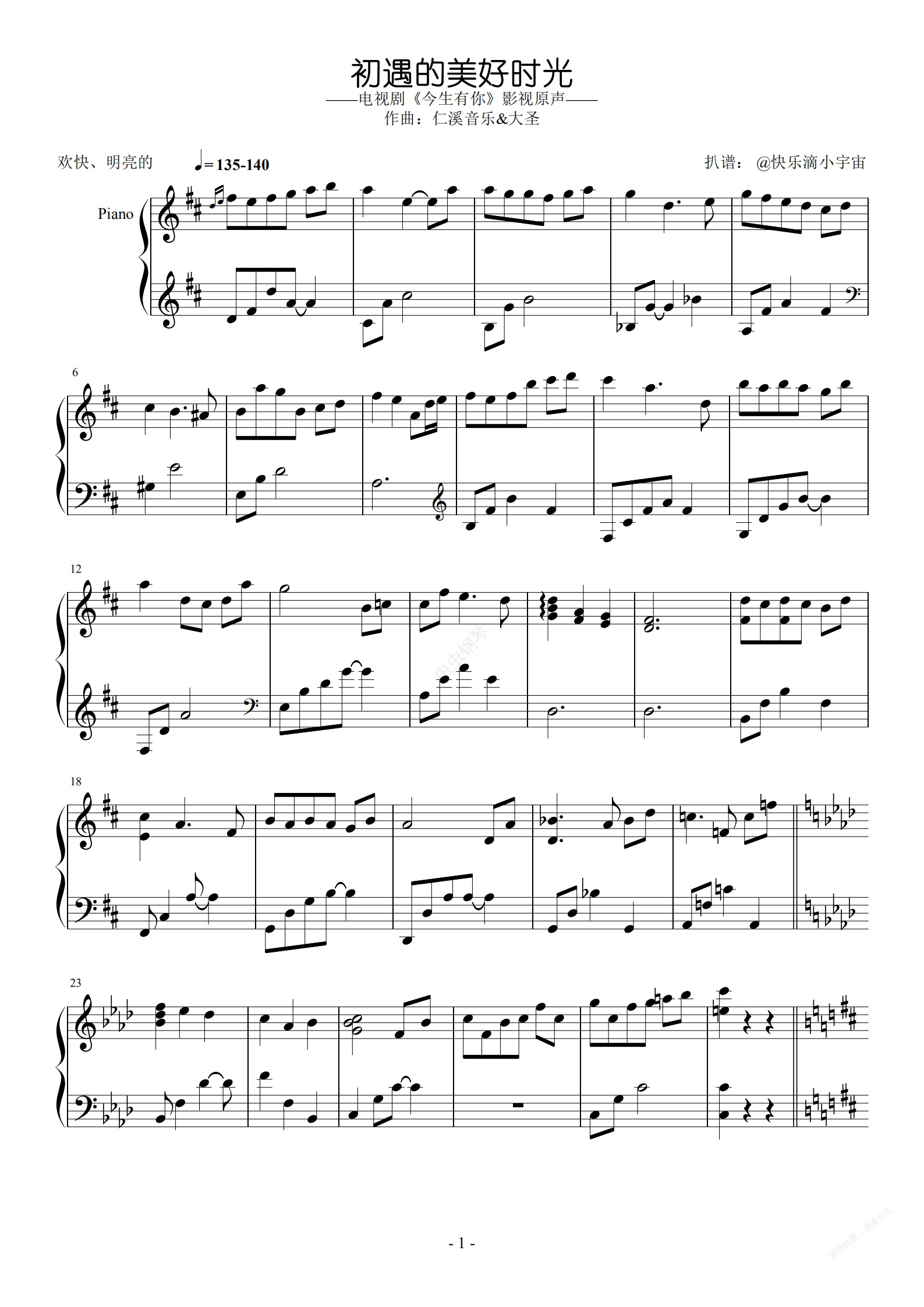 钢琴谱:初遇的美好时光-电视剧《今生有你》背景音乐