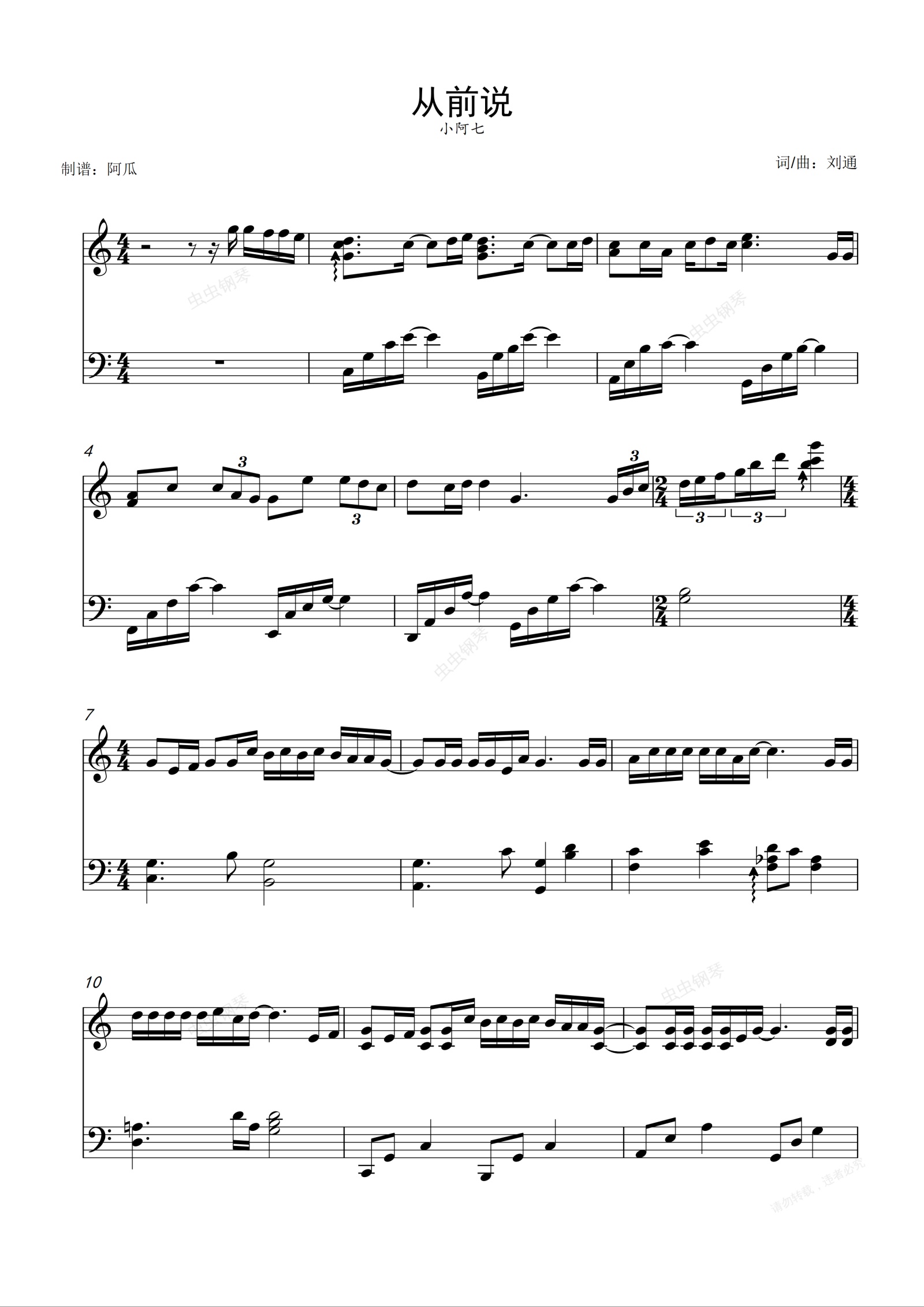 钢琴谱:从前说-C调精编-小阿七