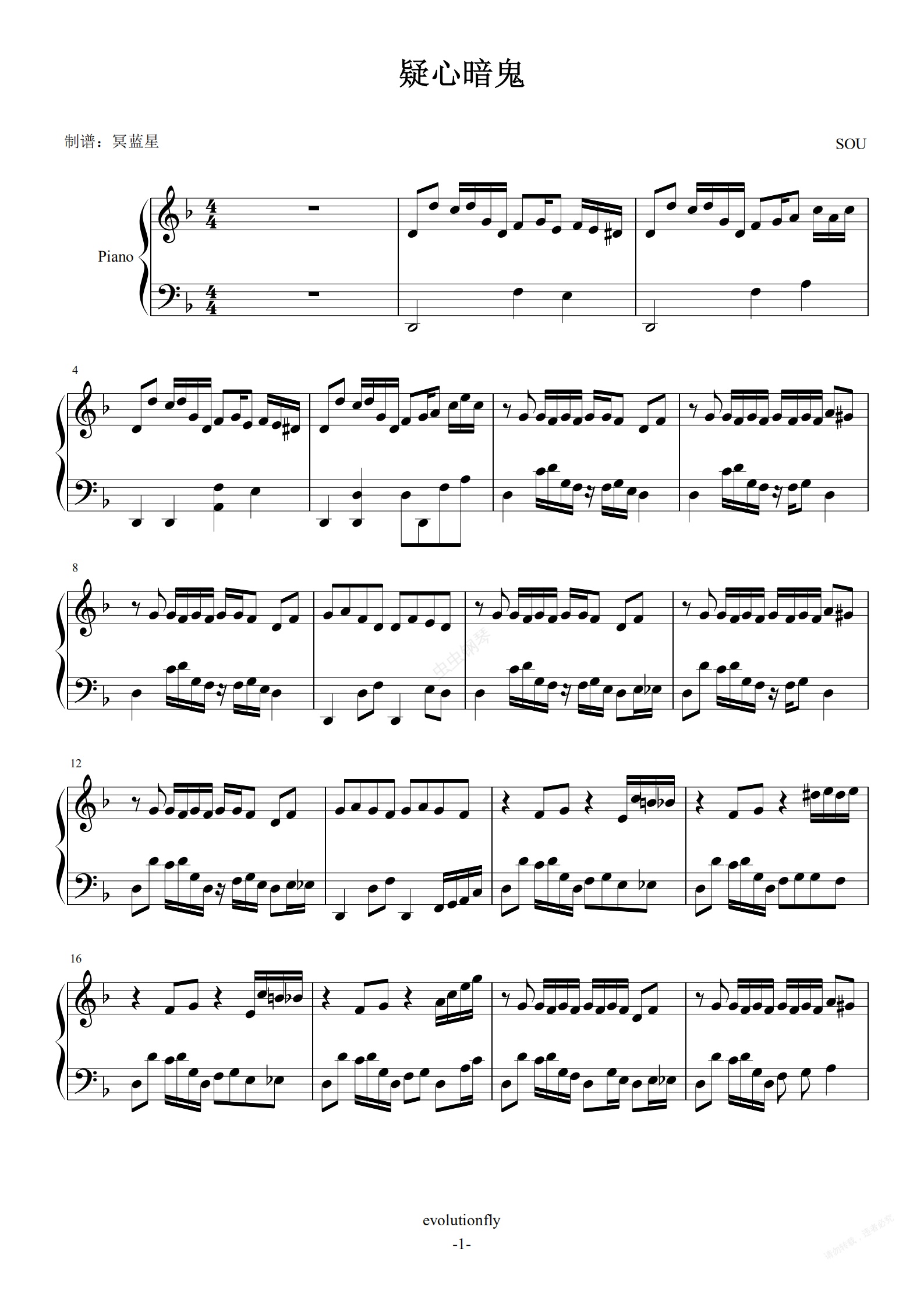 钢琴谱:疑心暗鬼-SOU-演奏谱