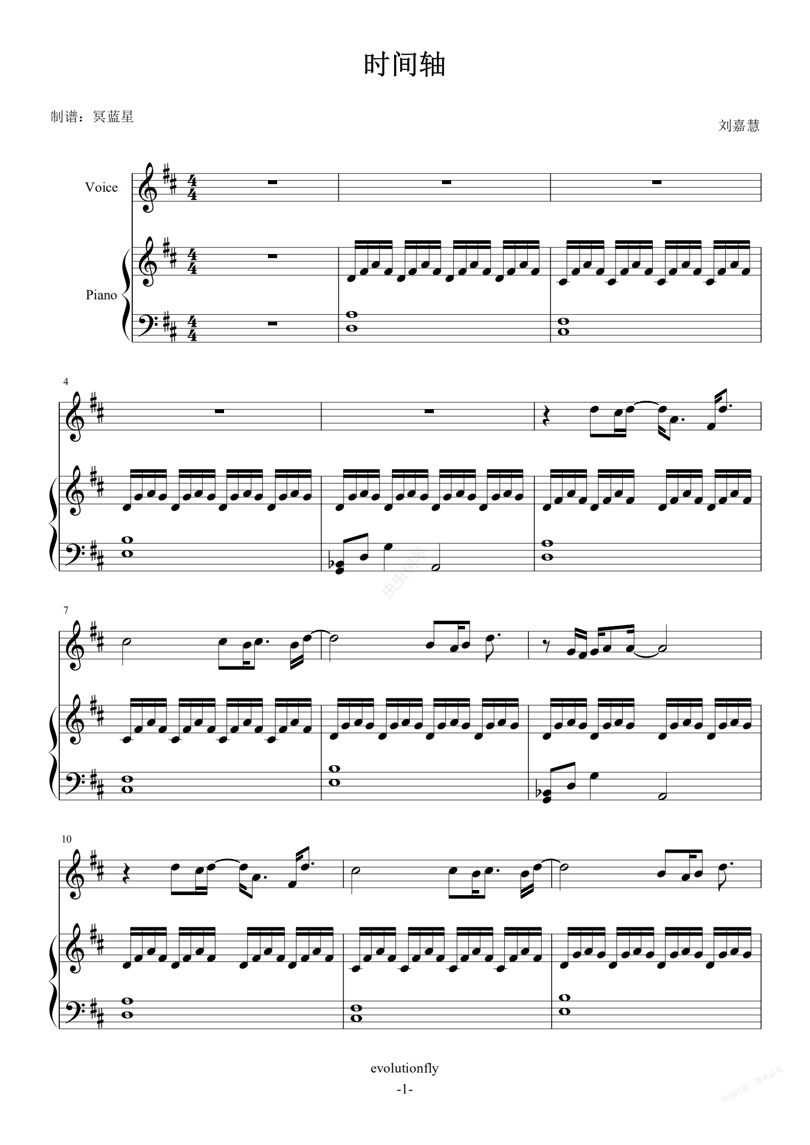 钢琴谱:时间轴-刘嘉慧-伴奏谱