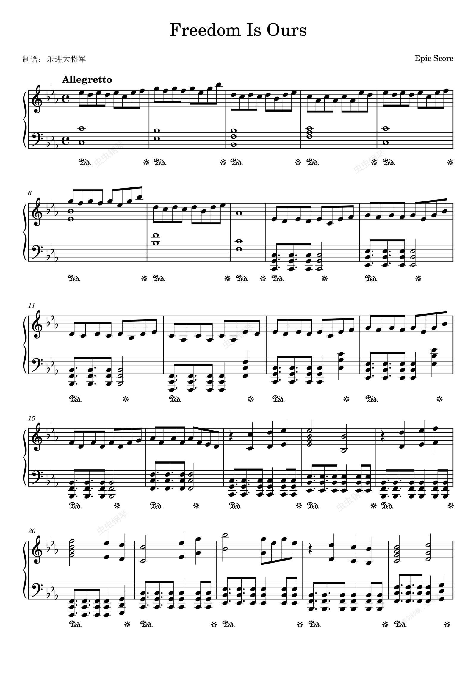 钢琴谱:史诗级BGM纯音乐 Freedom Is Ours 钢琴独奏版