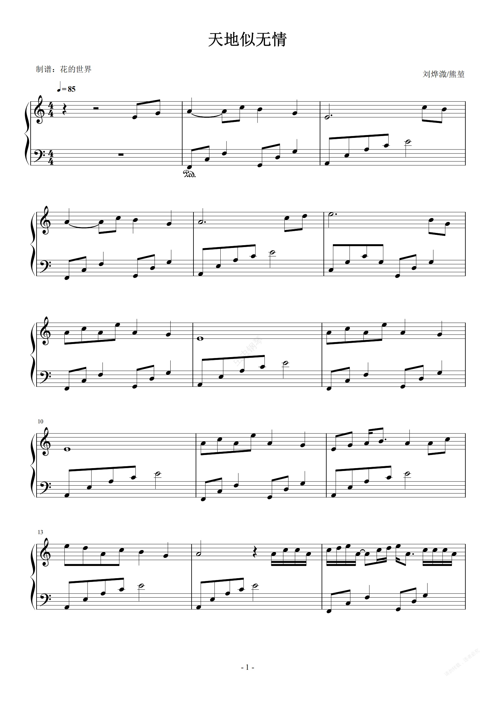 钢琴谱:天地似无情 C调简易版 Y-D/来一碗老于