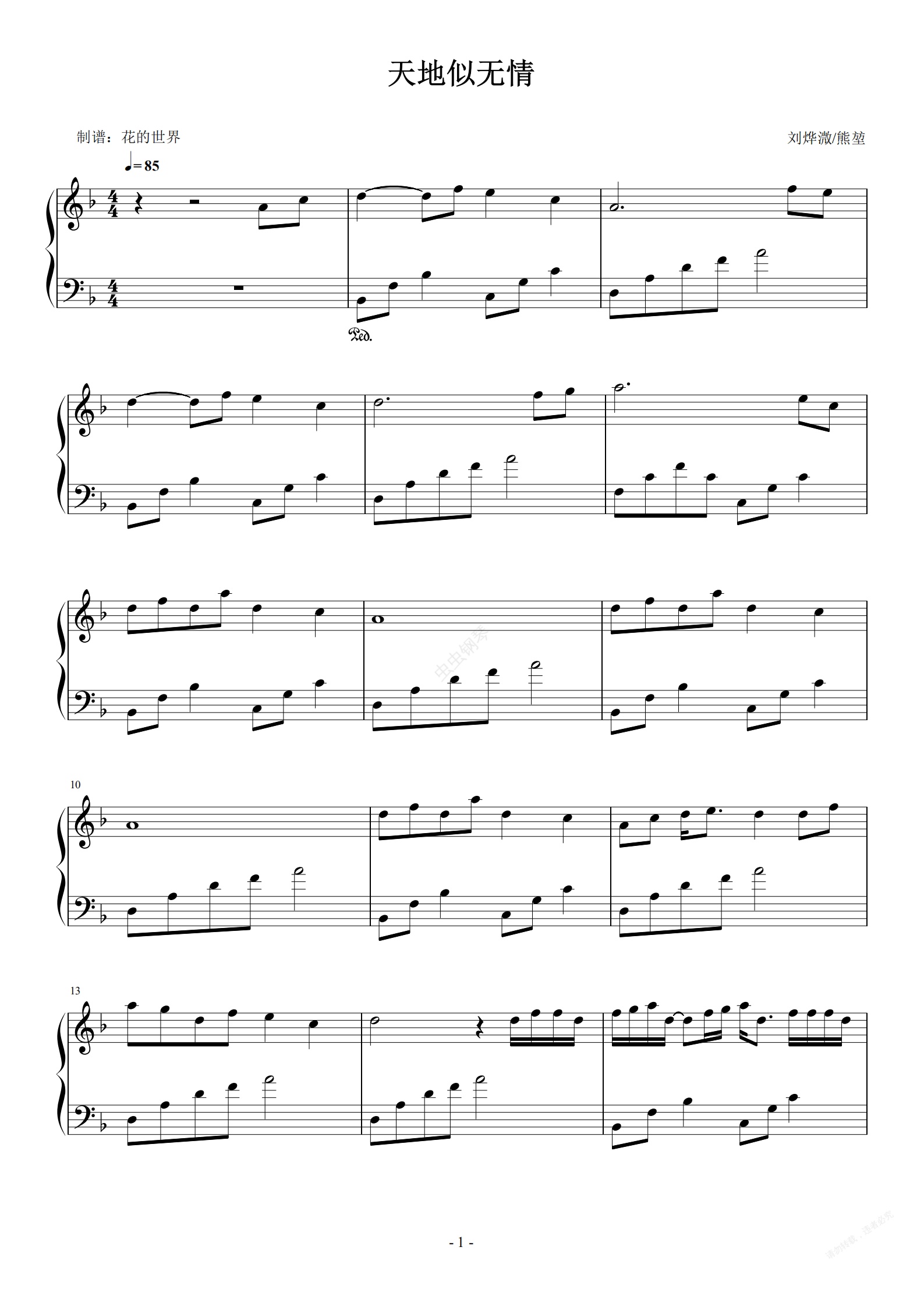 钢琴谱:天地似无情 简易版 Y-D/来一碗老于