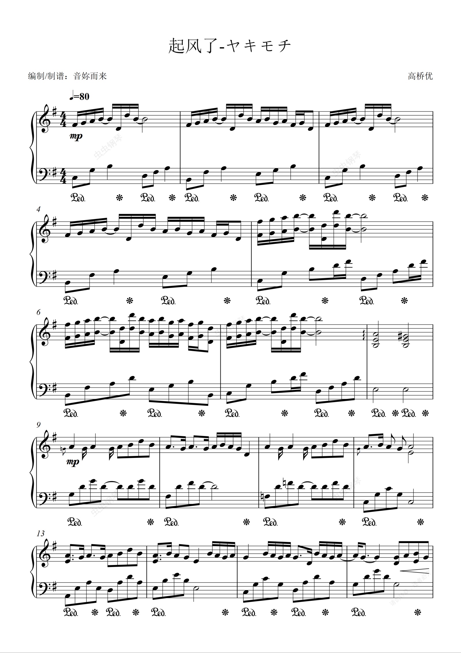 钢琴谱:【起风了】G调 精编钢琴独奏