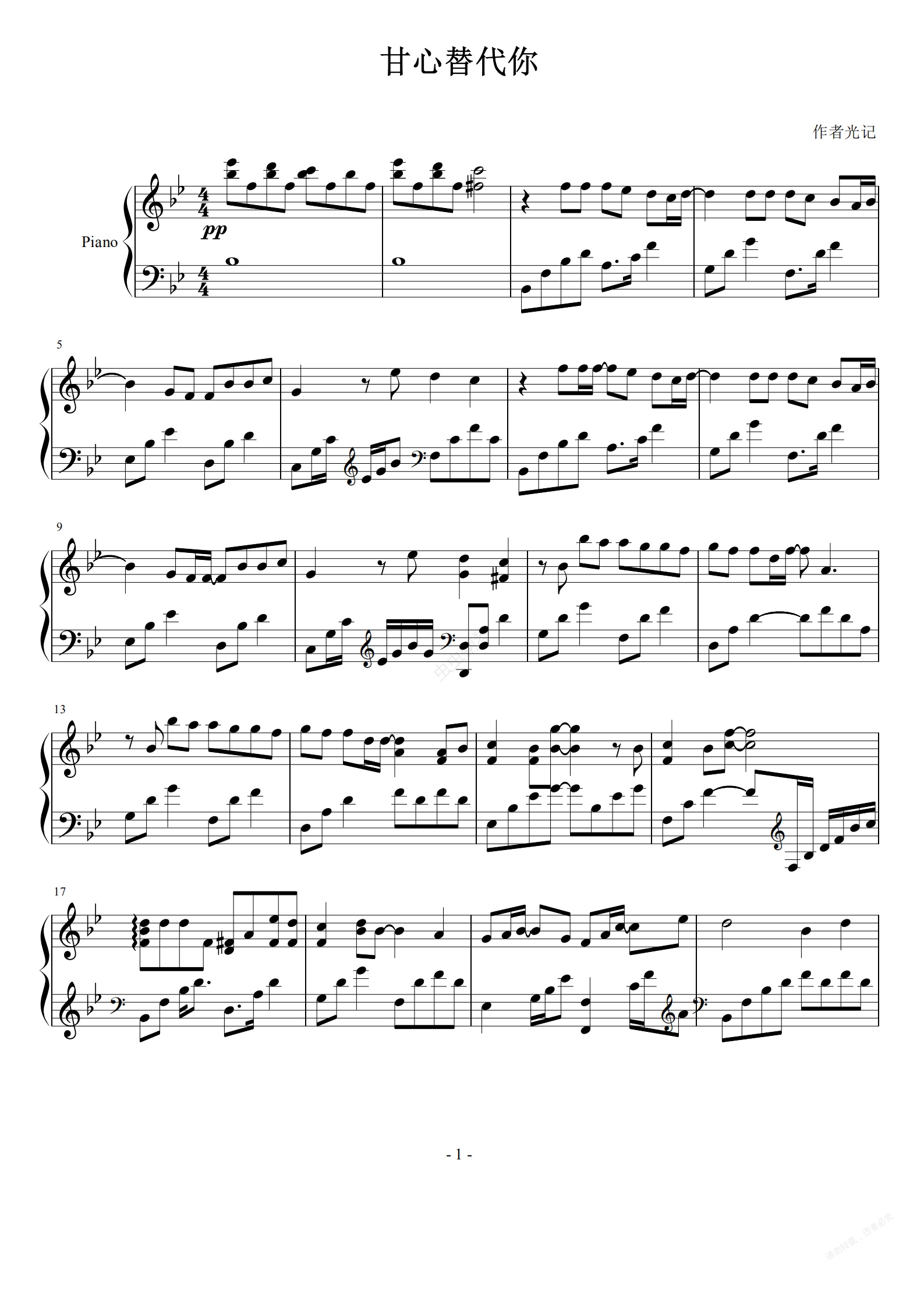 钢琴谱:甘心替代你钢琴独奏