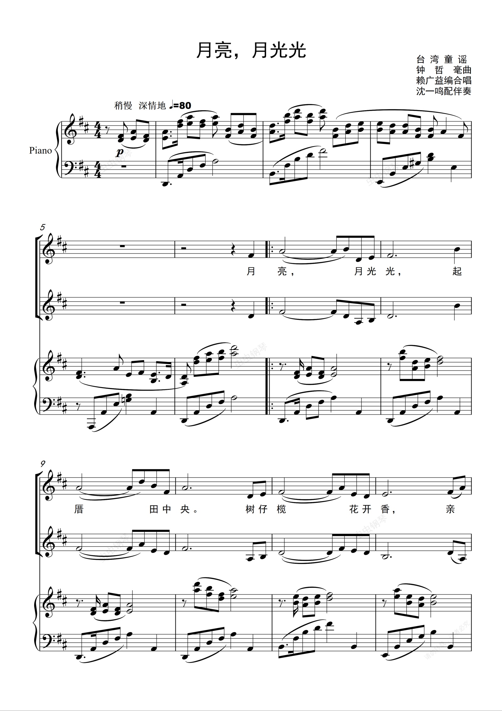 钢琴谱:月亮,月光光(童声合唱)