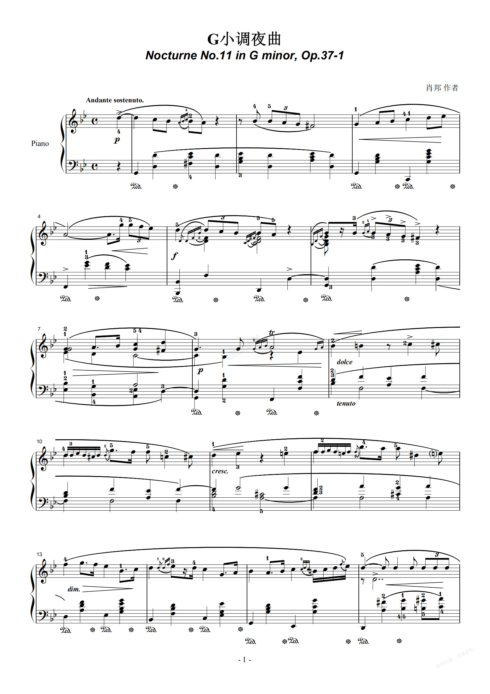 钢琴谱:肖邦:G小调夜曲, Op.37-1 NO.11