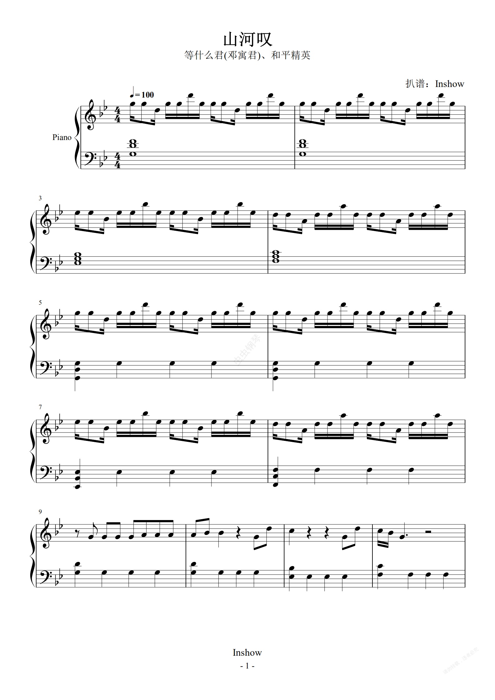 钢琴谱:山河叹【独奏】- 等什么君(邓寓君)、和平精英 -(和平精英“风花雪月”时装印象专辑主题曲)