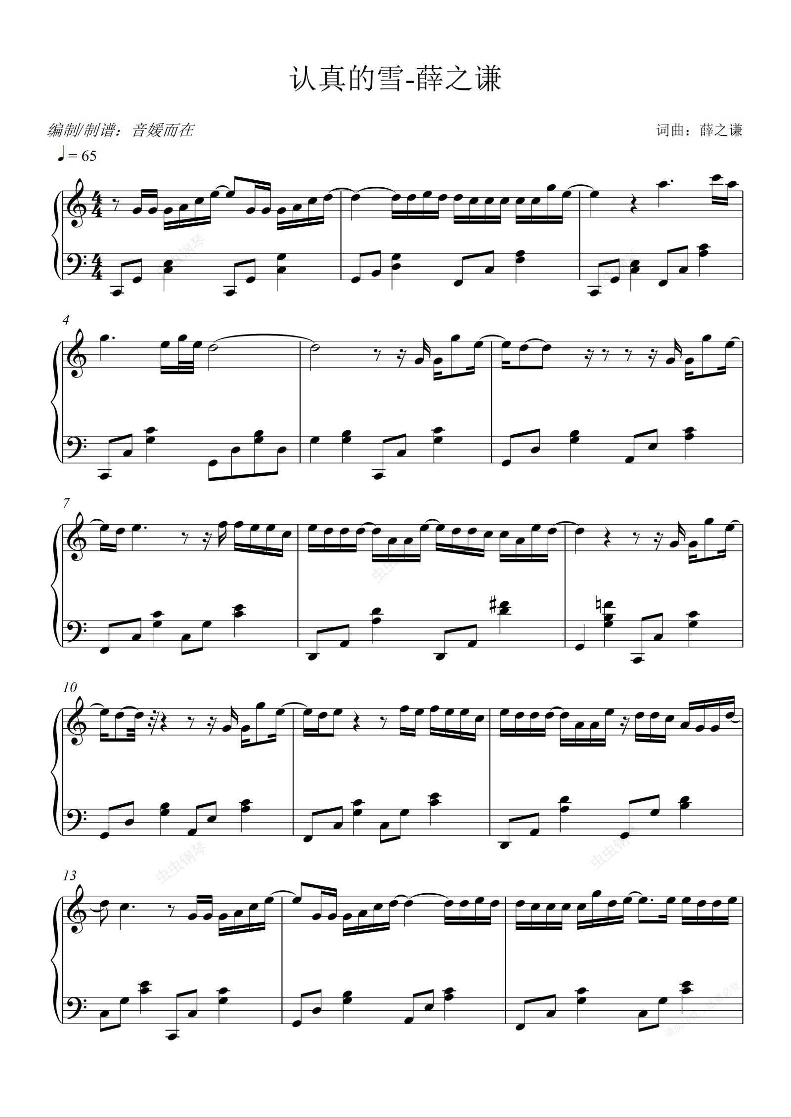 钢琴谱:【经典歌曲】认真的雪-薛之谦