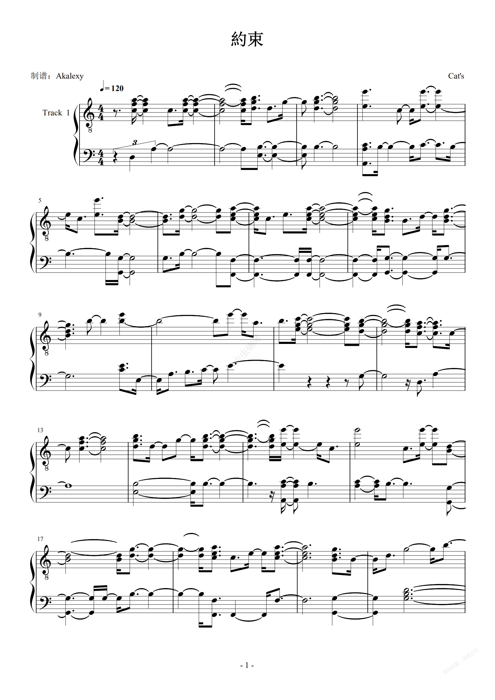 钢琴谱:朱AKA《約束》