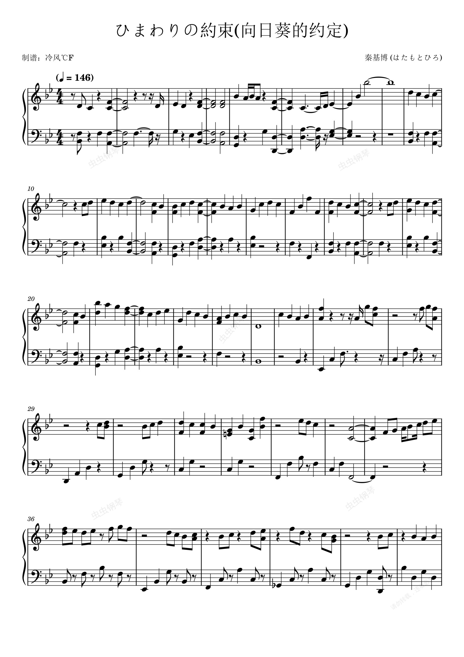 钢琴谱:ひまわりの約束(向日葵的约定)-秦基博 (はたもとひろ)