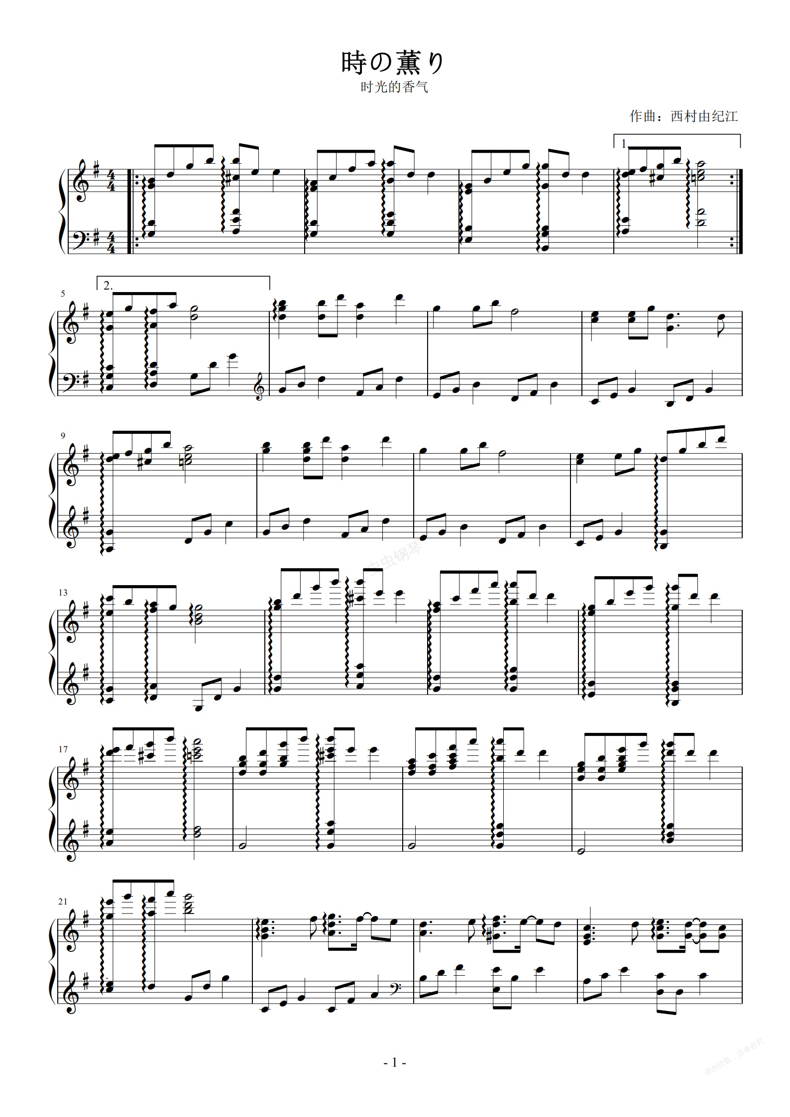 钢琴谱:時の薫り(时光的香气)