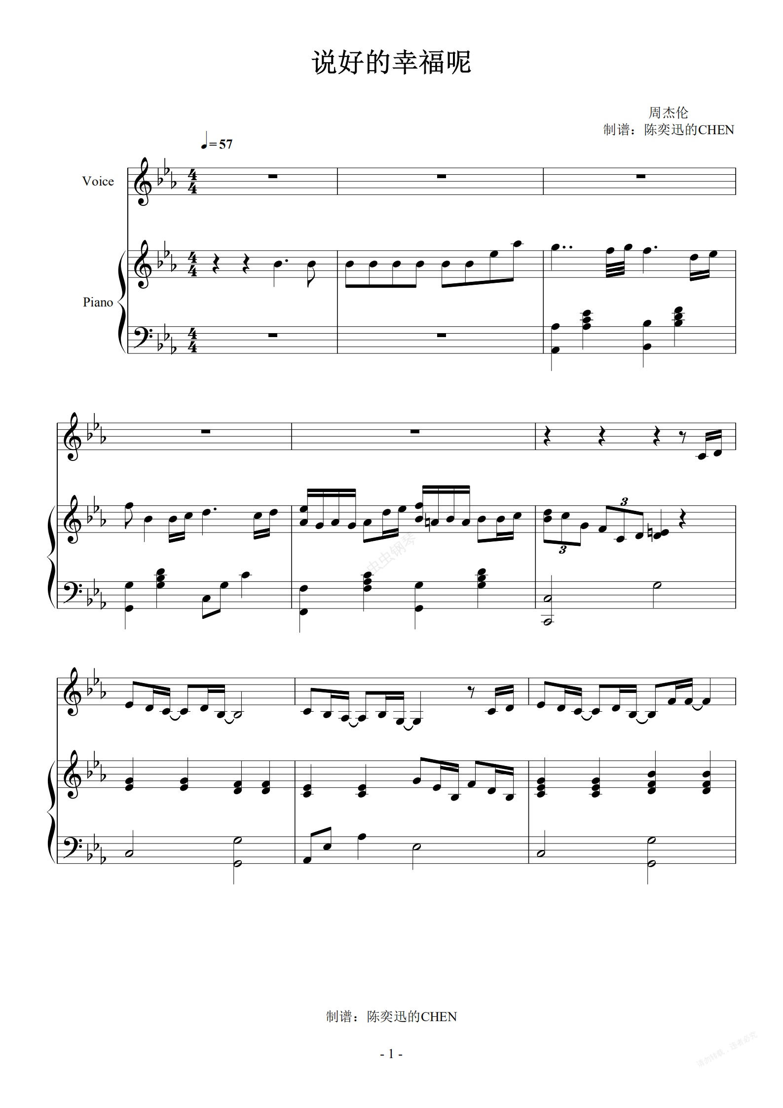 钢琴谱:说好的幸福呢 弹唱谱(女生版无转调 )