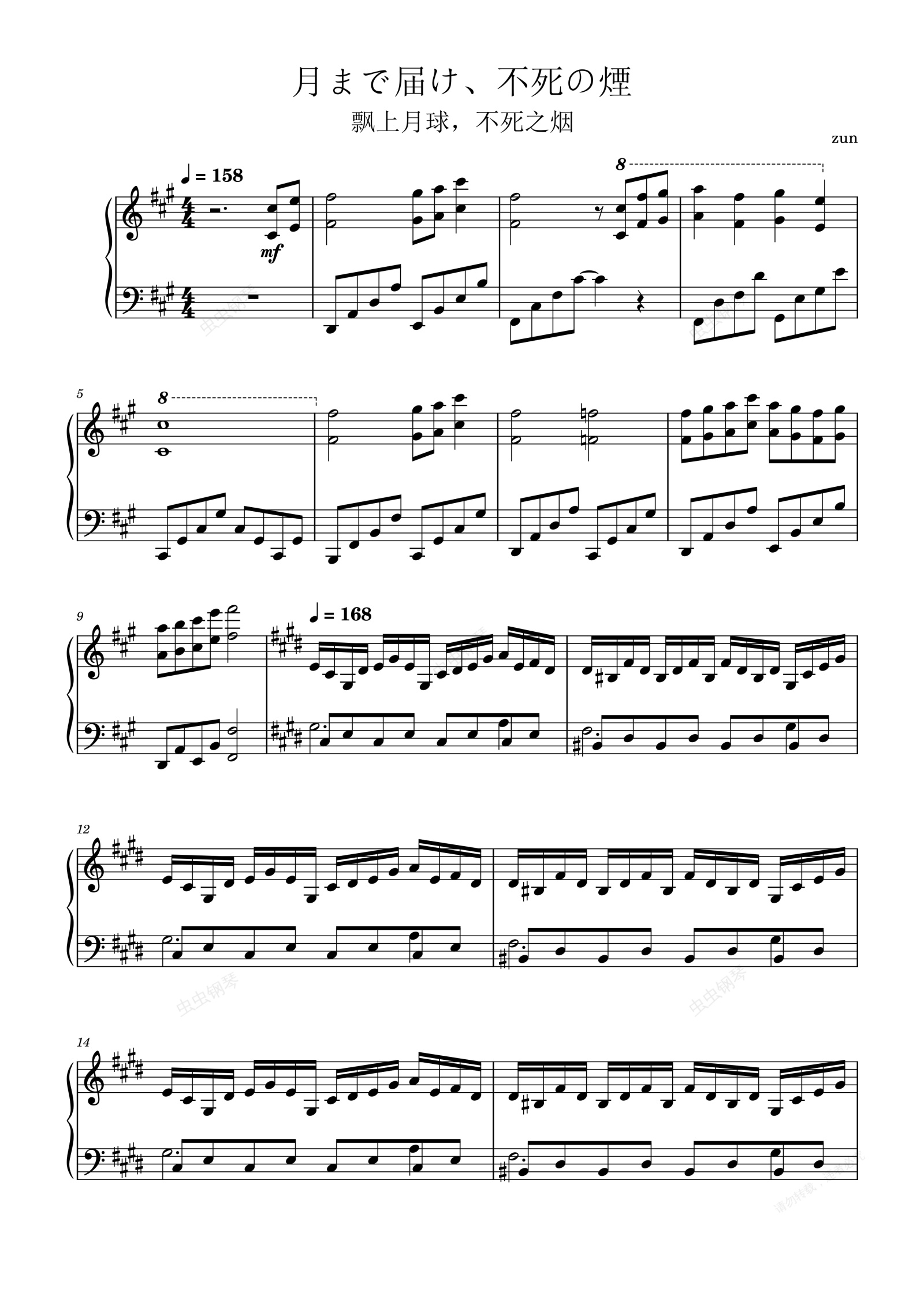 钢琴谱:月まで届け、不死の煙 - 飘上月球,不死之烟