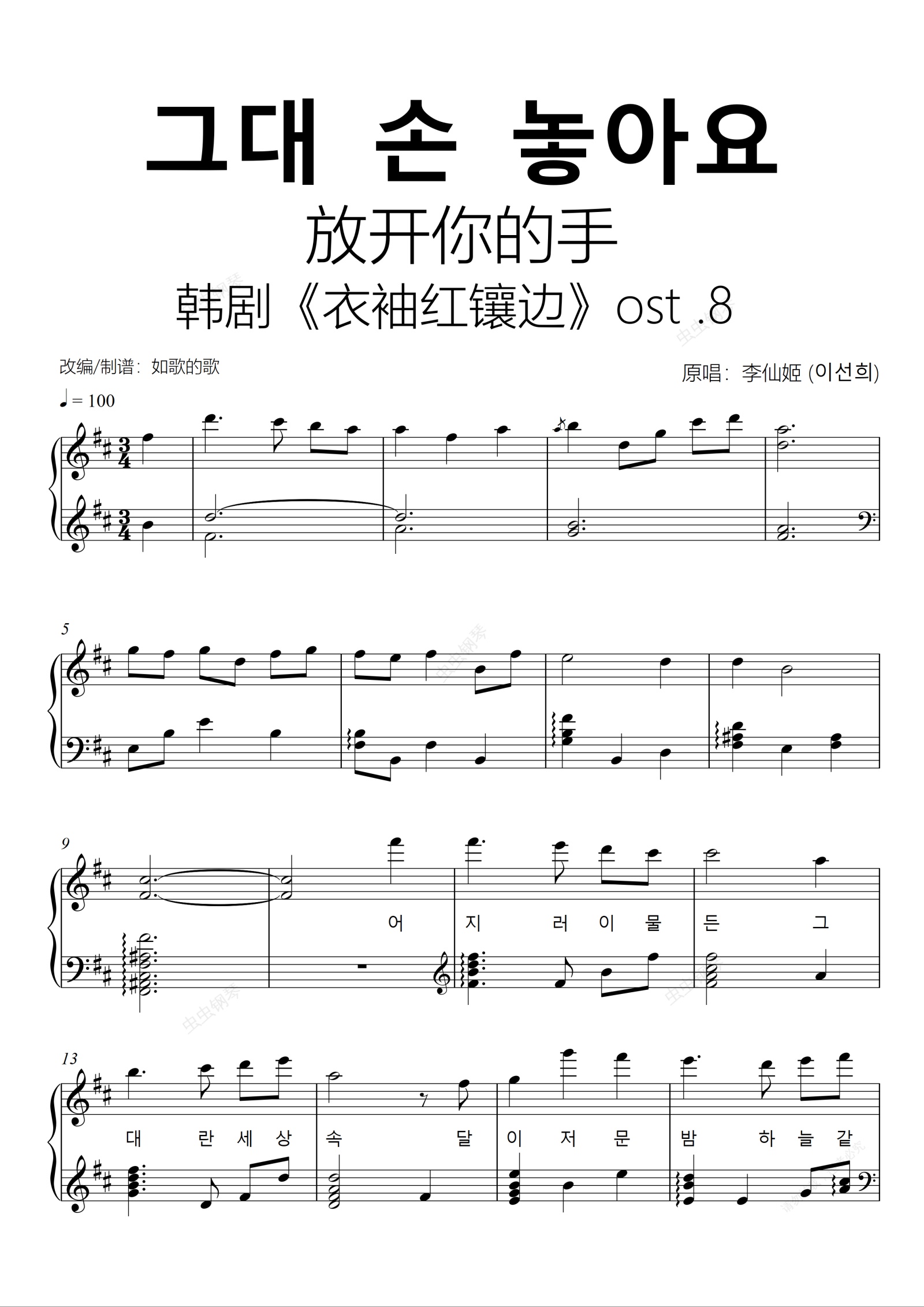 钢琴谱:放开你的手-韩剧<衣袖红镶边>ost.8可弹可唱