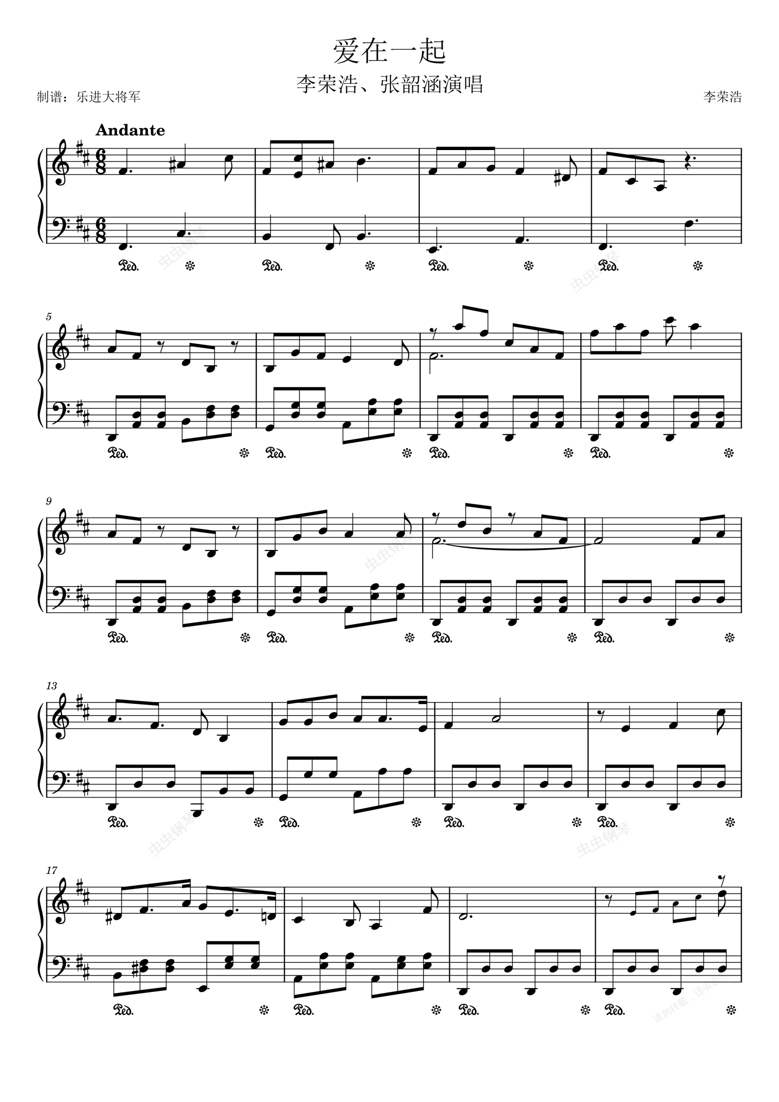 钢琴谱:2022春晚歌曲 《爱在一起》张韶涵李荣浩演唱