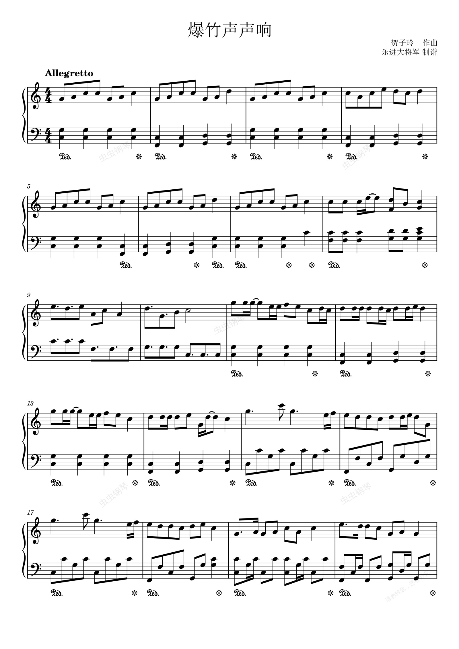 钢琴谱:爆竹声声响 C调简单版