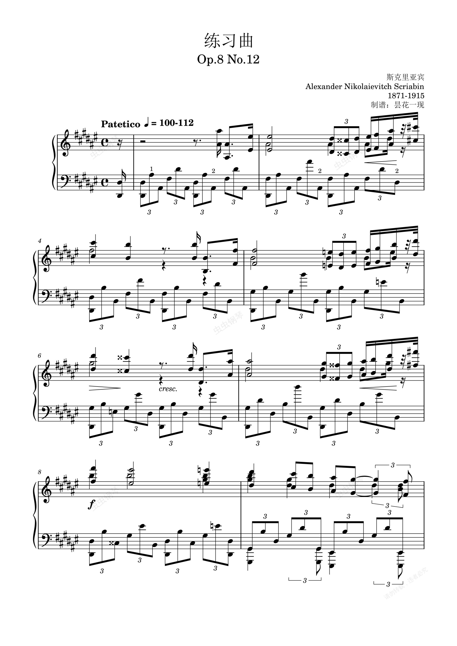 钢琴谱:练习曲 斯克里亚宾,Op.8 No.12 (原版曲谱)