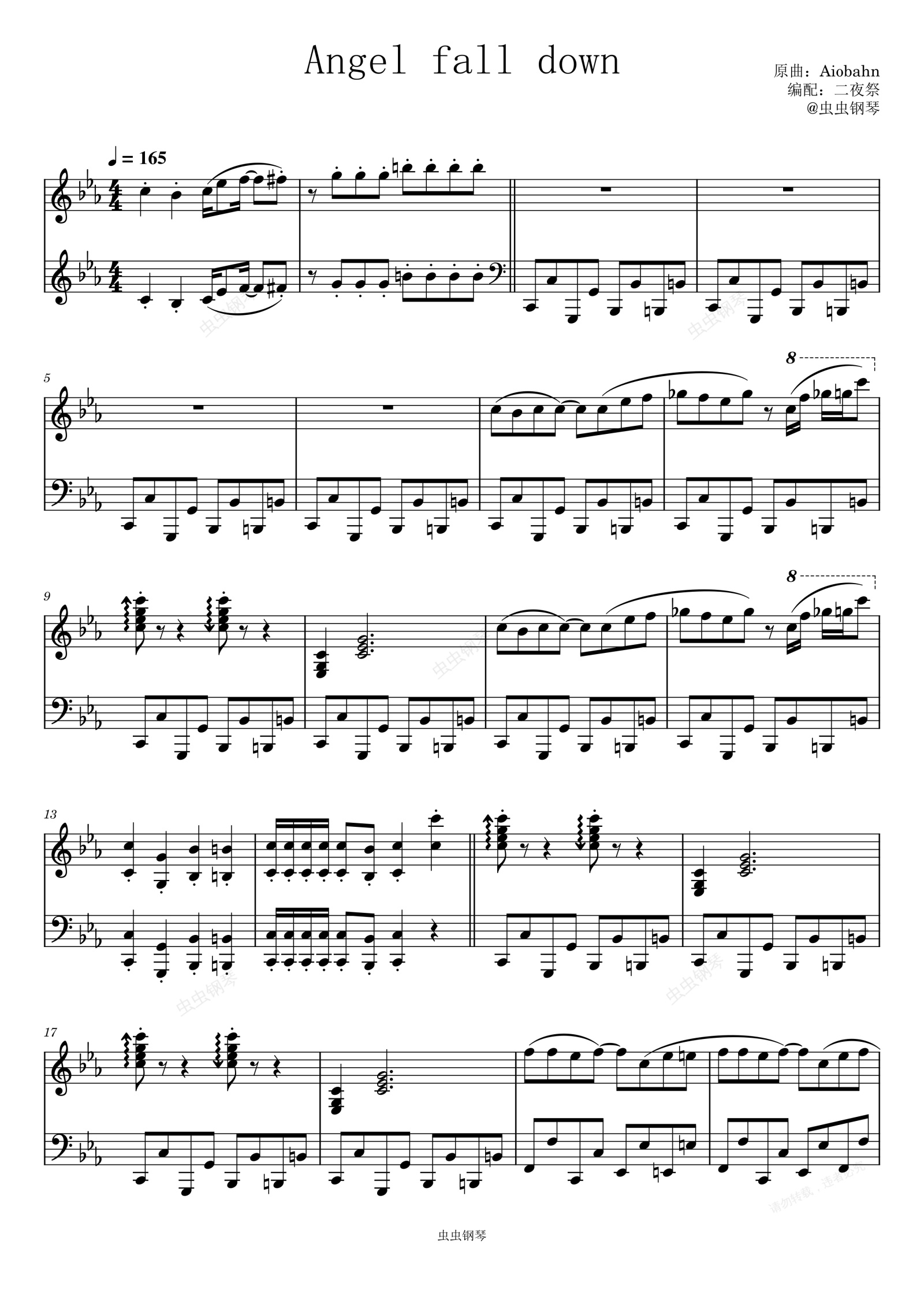 钢琴谱:【主播女孩重度依赖】Angel fall down
