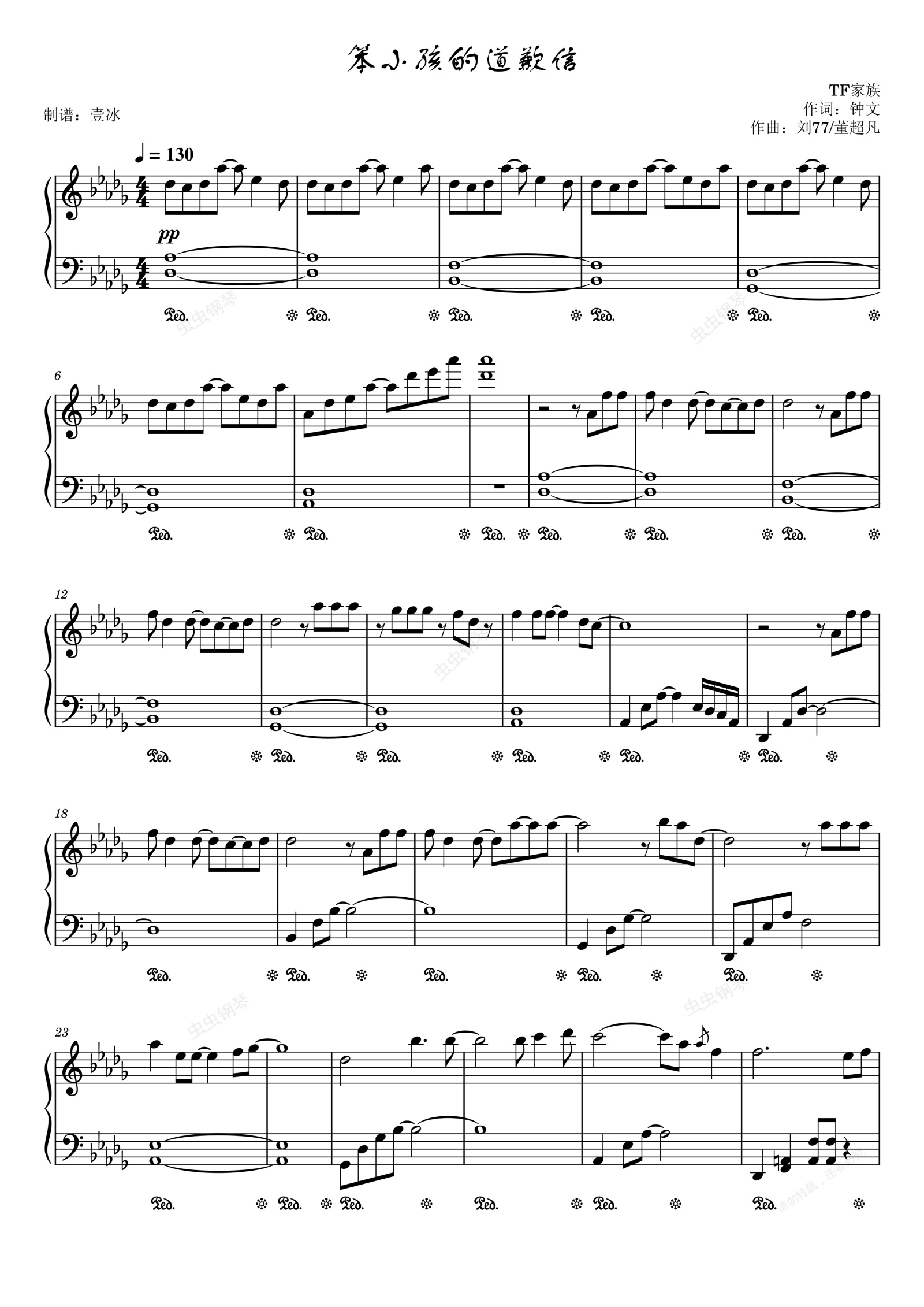 钢琴谱:笨小孩的道歉信//TF家族-原调