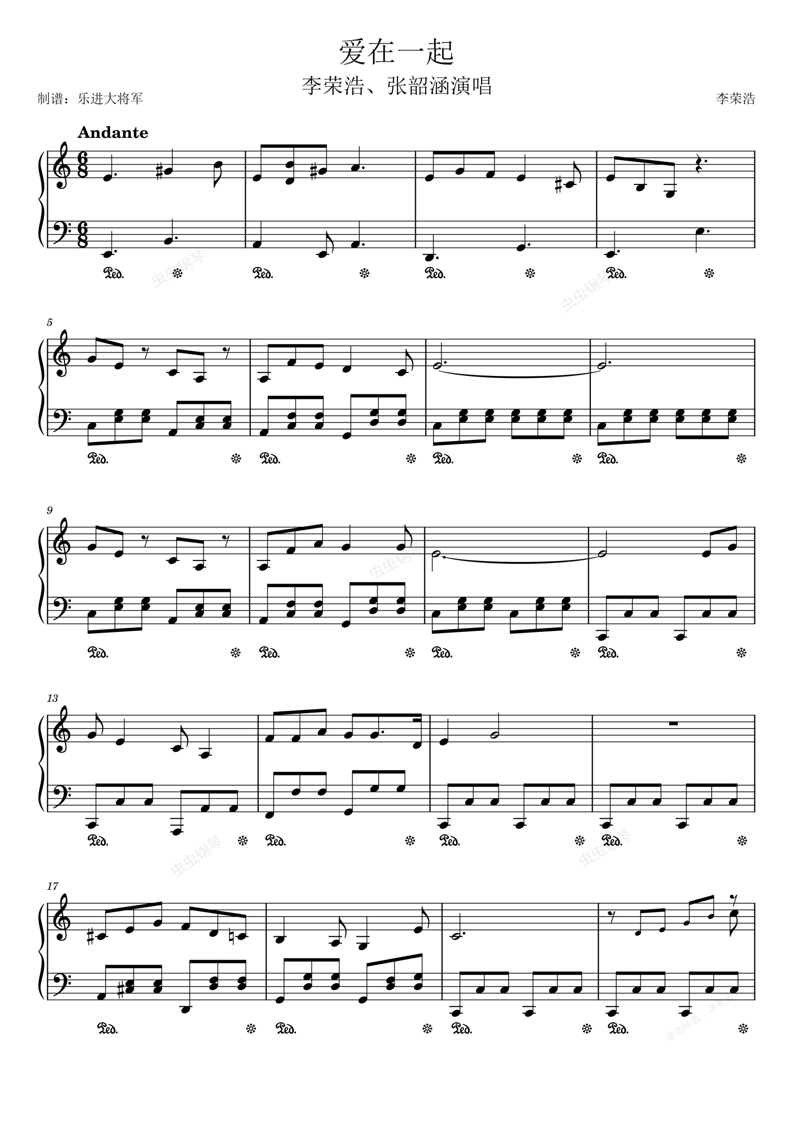 钢琴谱:央视春晚 《爱在一起》C调简单版