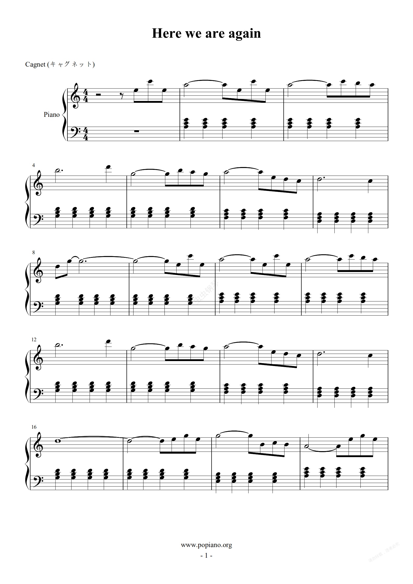 钢琴谱:《Here we are again》喜剧之王 电影插曲