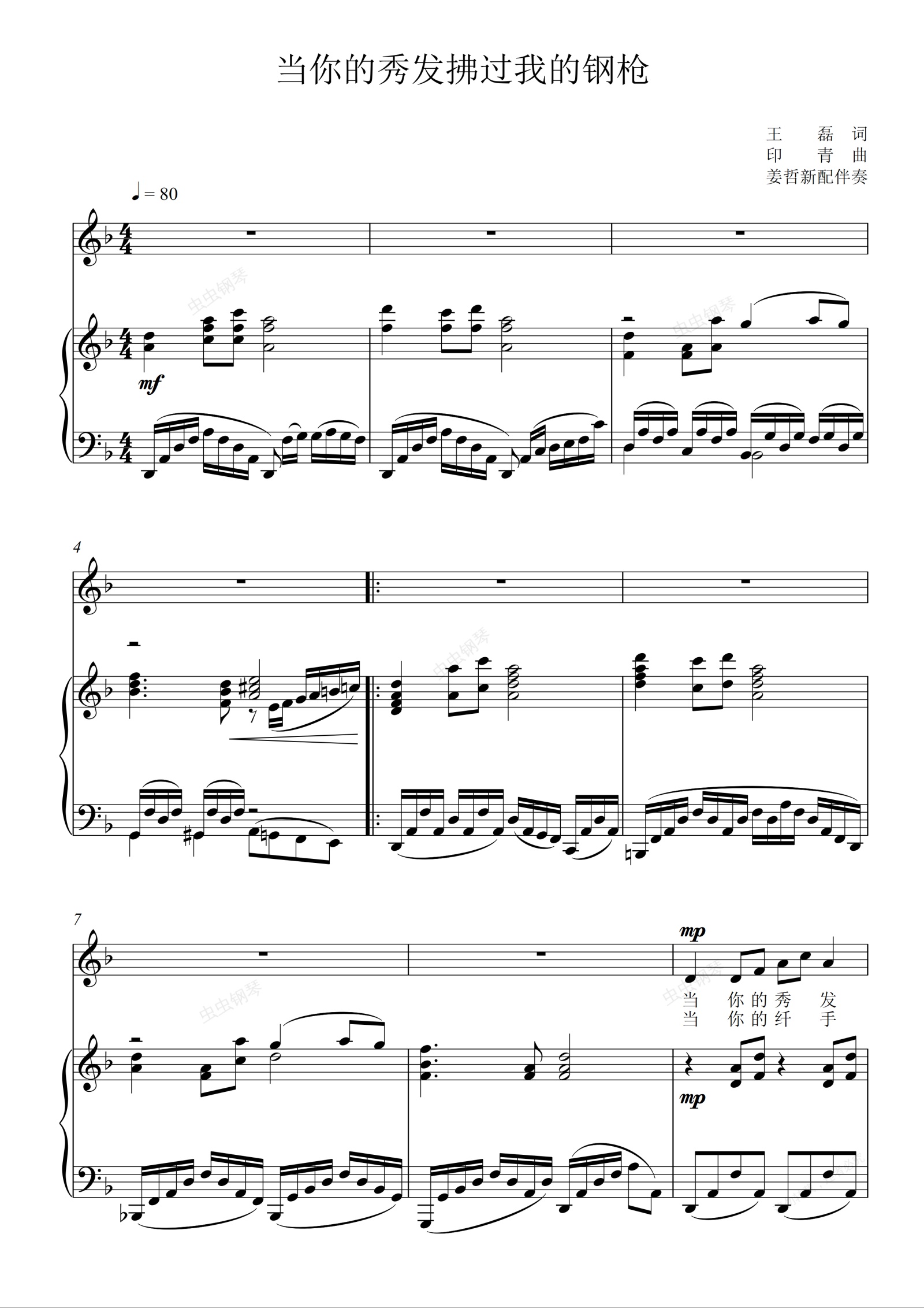 钢琴谱:当你的秀发拂过我的钢枪—完整曲谱