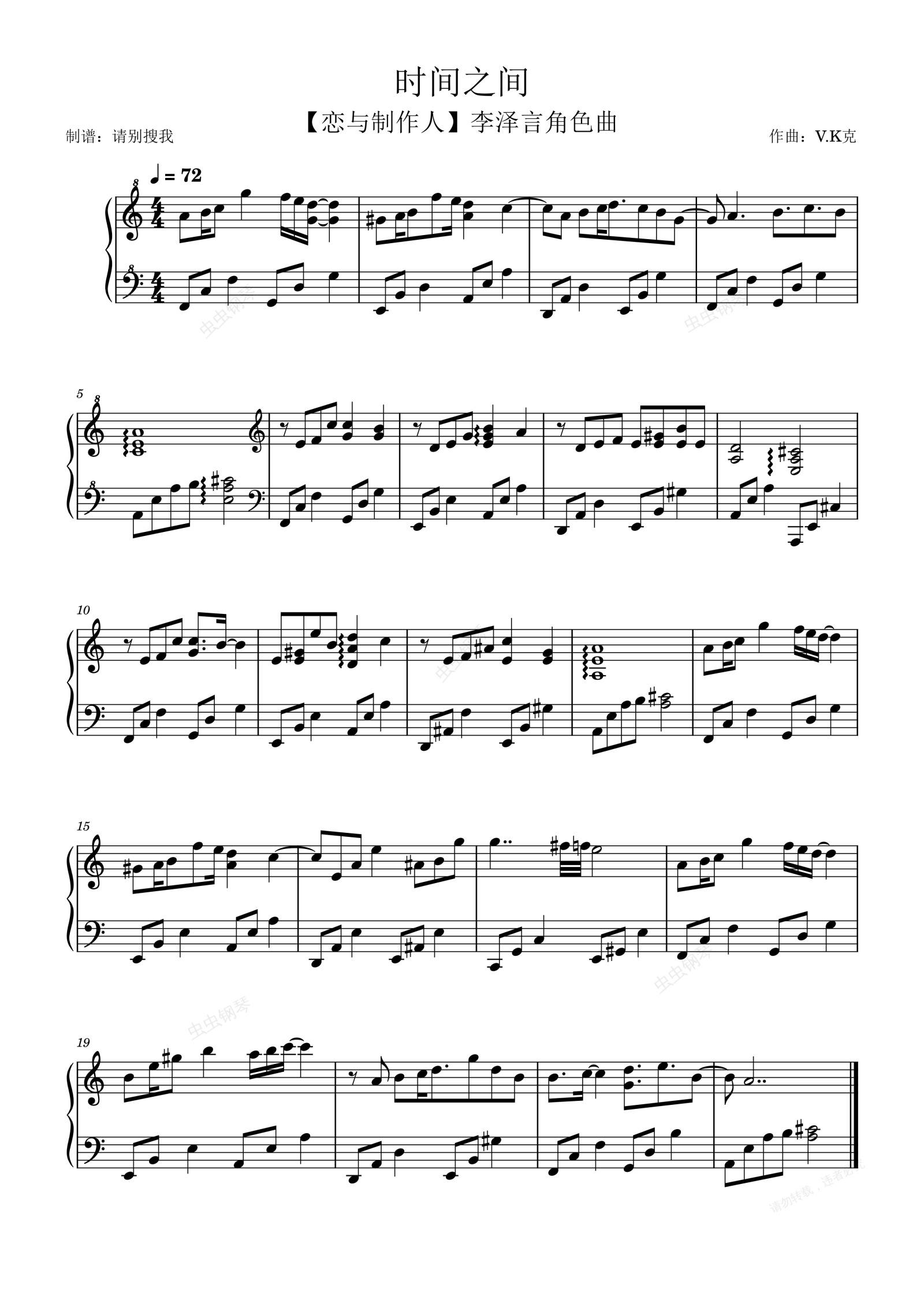钢琴谱:《时间之间》-C调 V.K克〖《恋与制作人》李泽言角色曲〗