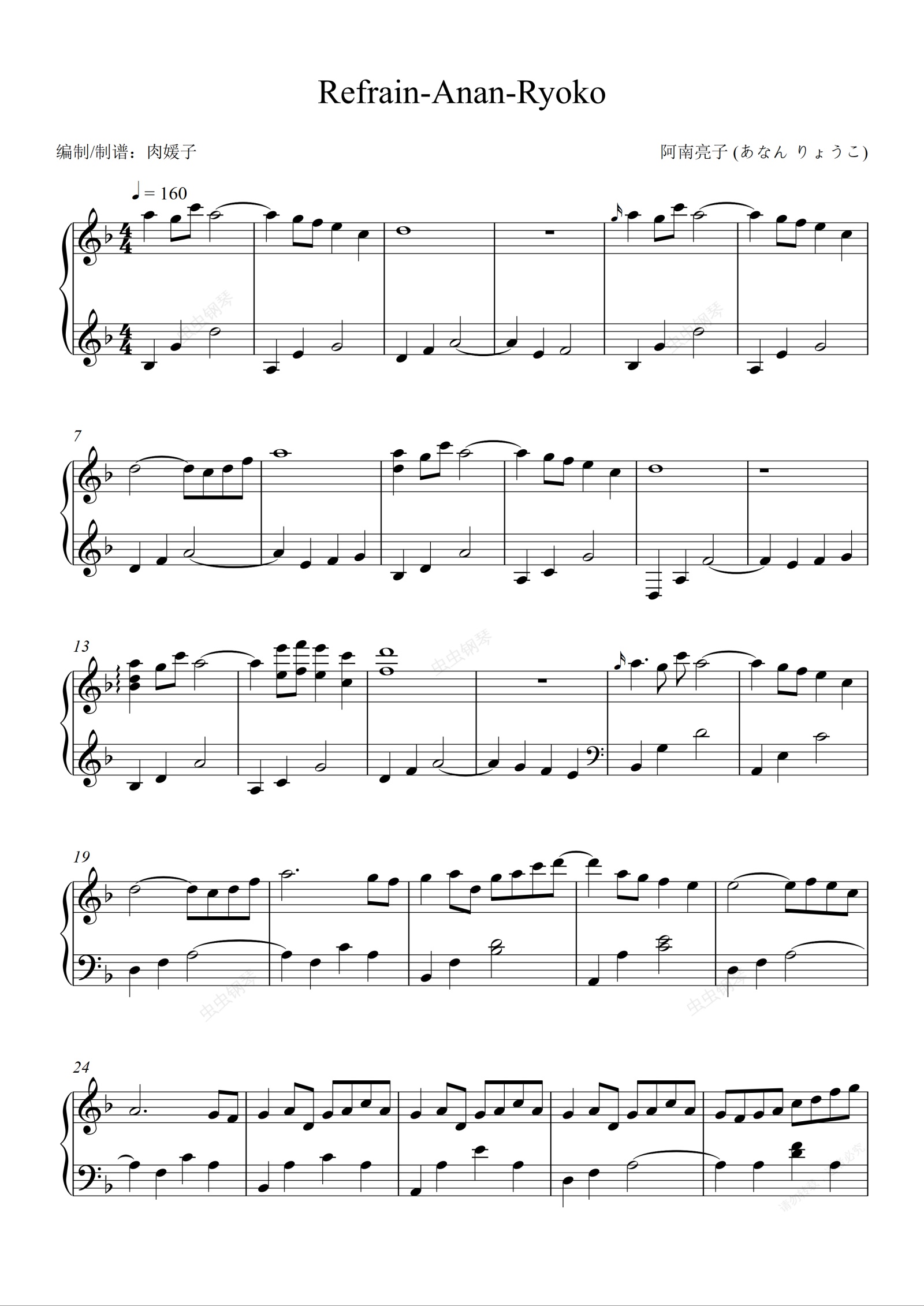 钢琴谱:Refrain - Anan Ryoko 美到流泪的一首钢琴曲