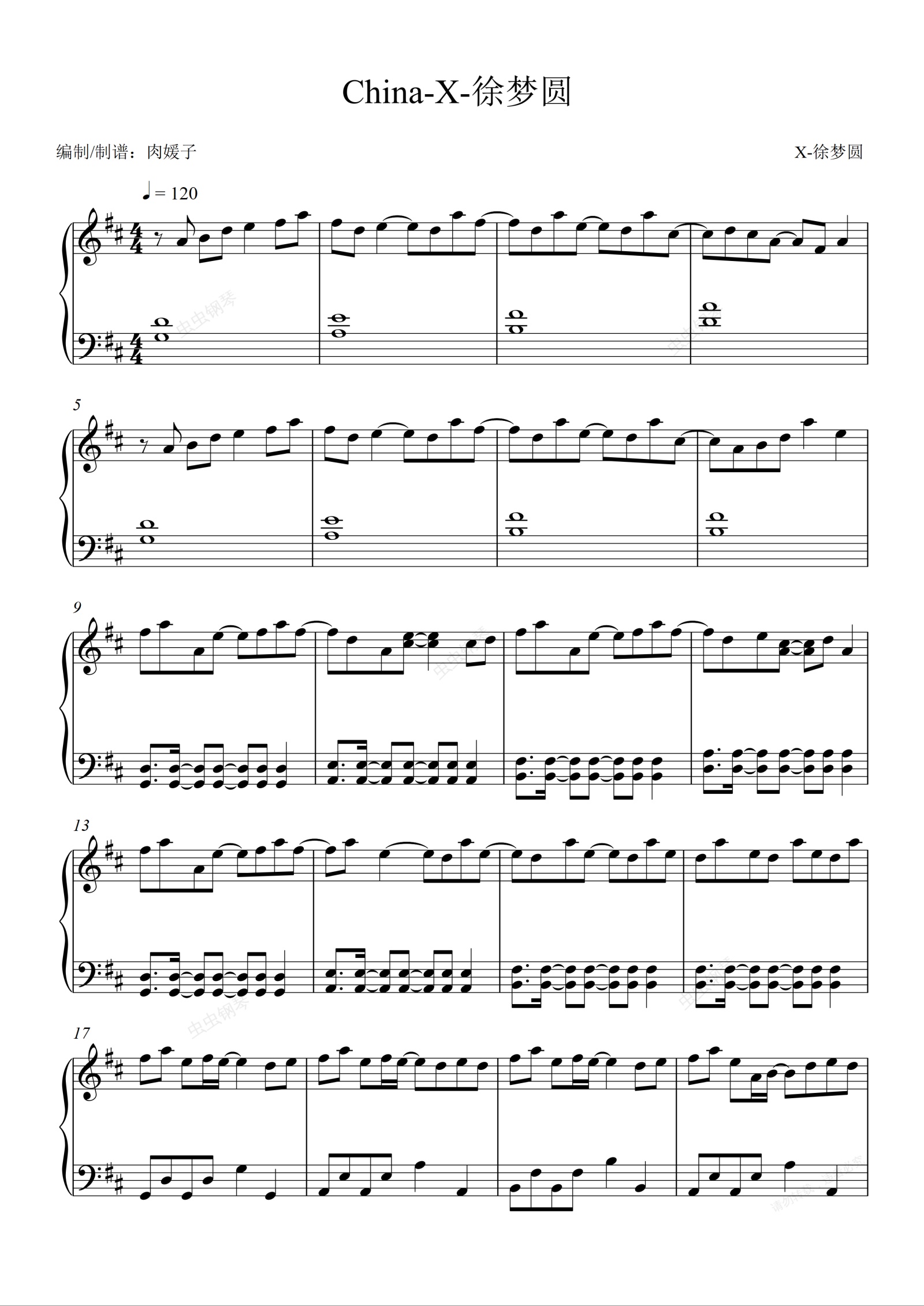 钢琴谱:China-X 徐梦圆 【这么好听的确定不弹嘛】