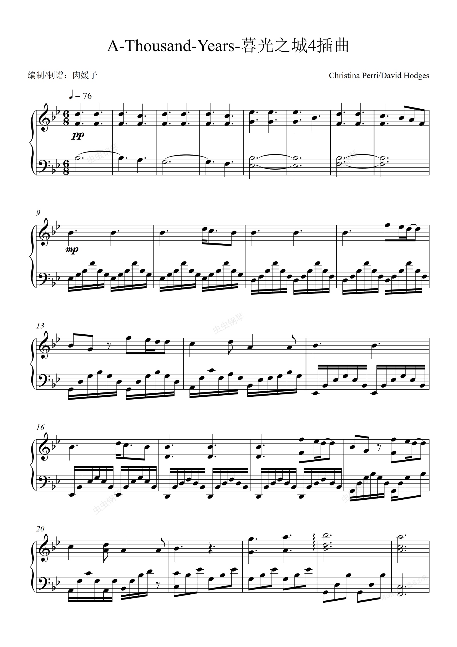 钢琴谱:油管超16亿播放!A Thousand Years 钢琴