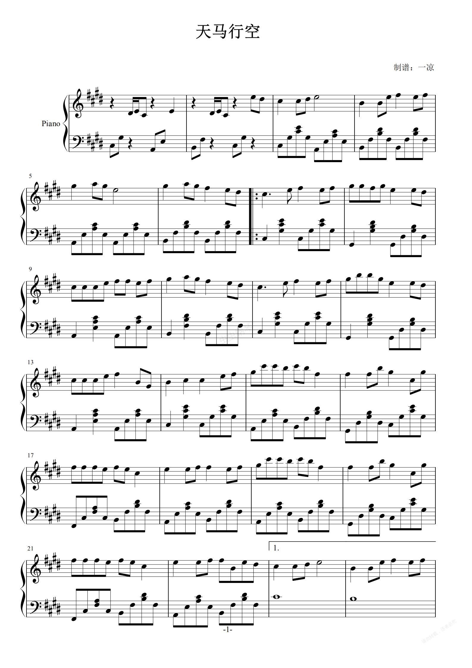 钢琴谱:天马行空 潮流儿歌