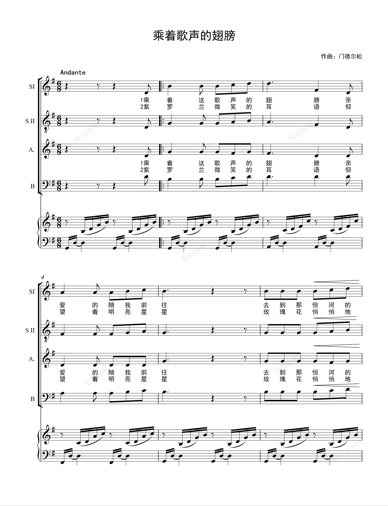 钢琴谱:乘着歌声的翅膀(四声部合唱)