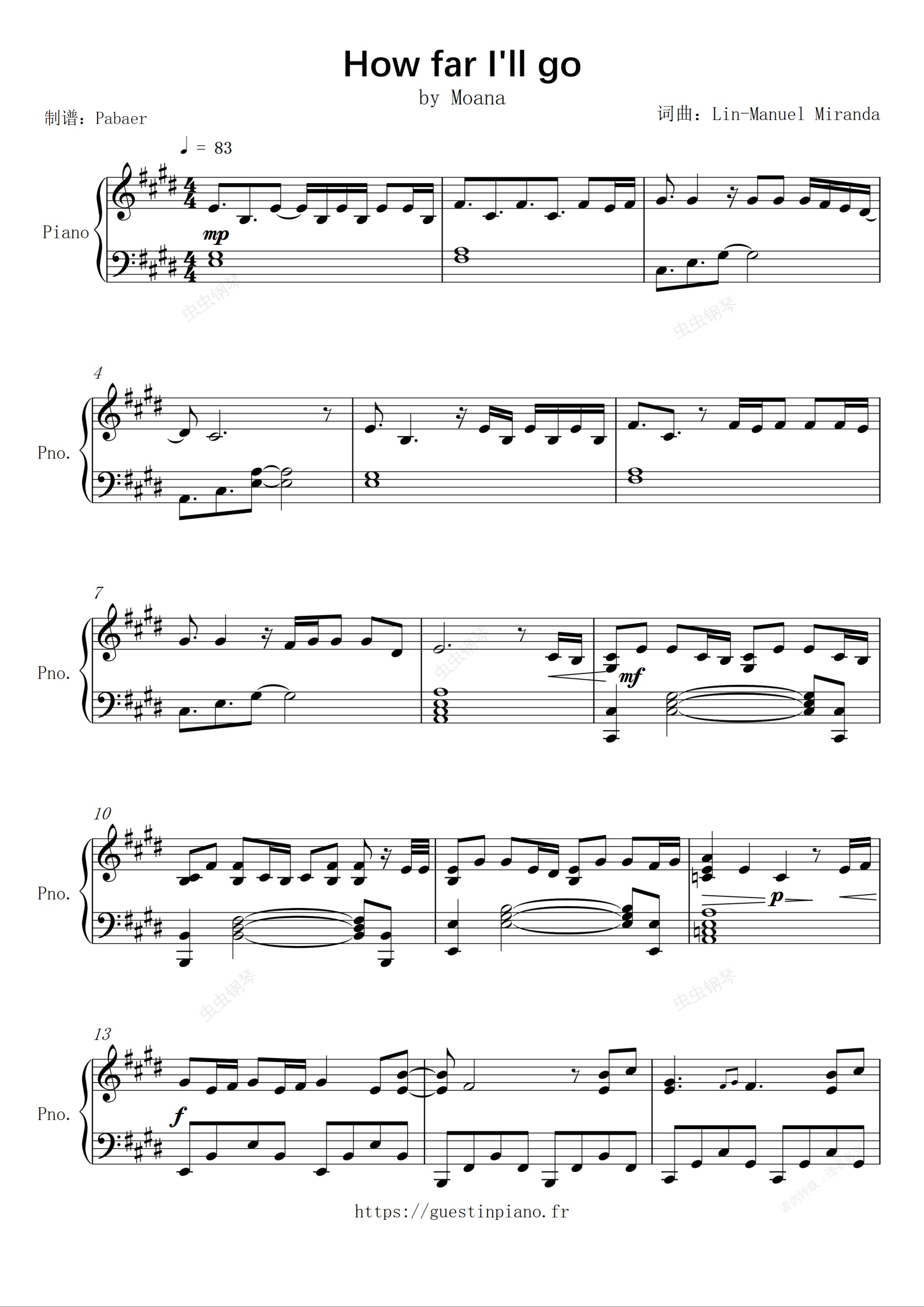 钢琴谱:How Far I'll Go(海洋奇缘片尾曲)