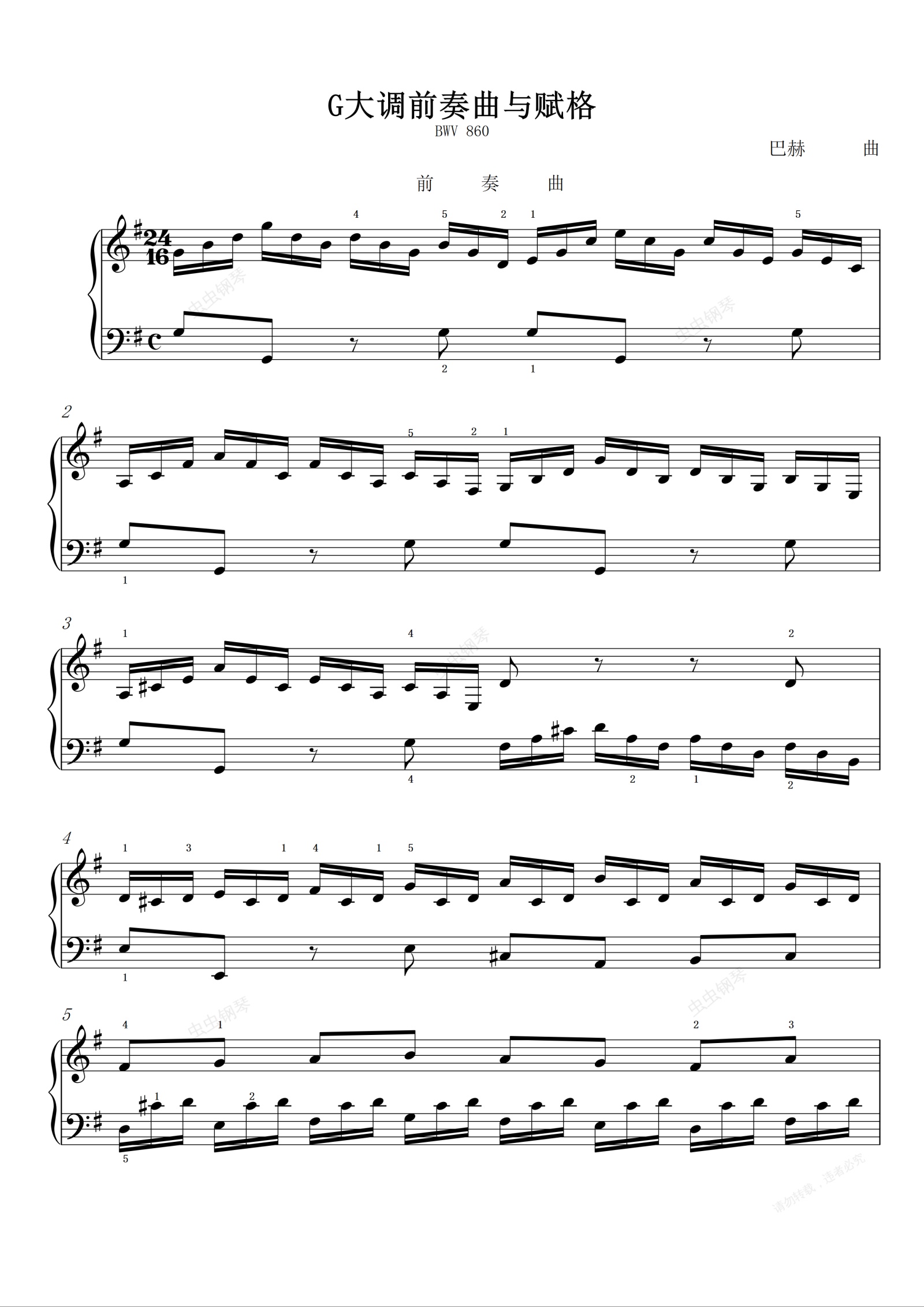 钢琴谱:川音-十级-第三套-3a G大调前奏曲与赋格 BWV860