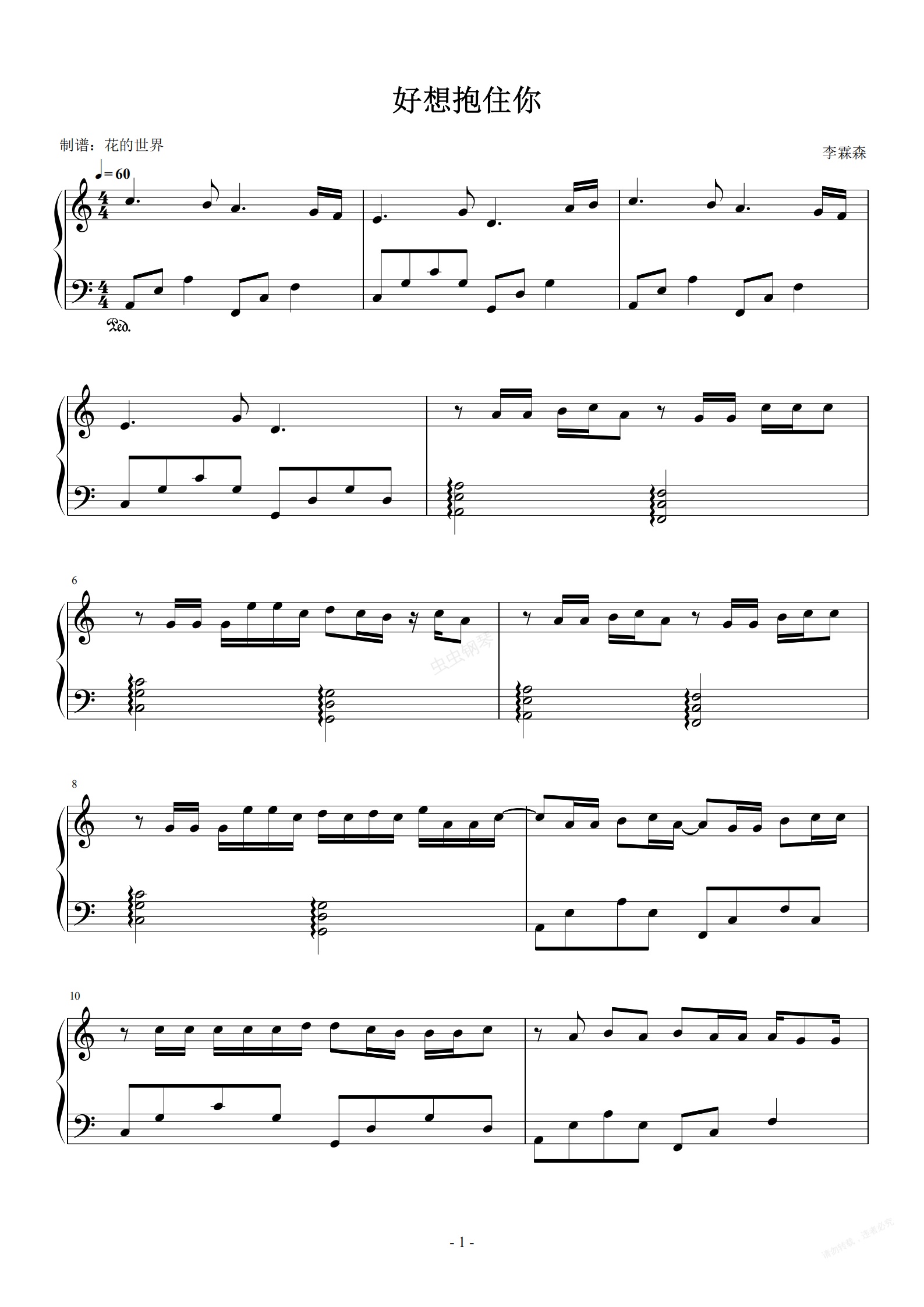钢琴谱:好想抱住你 C调简易版 程jiajia