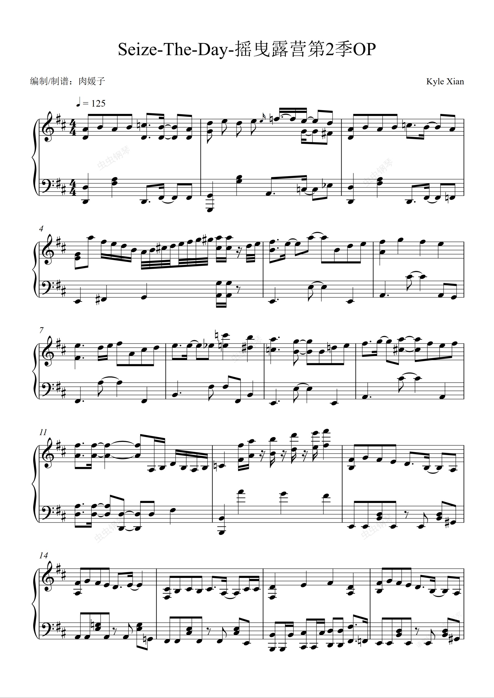 钢琴谱:「摇曳露营△第二季」OP主題曲「Seize The Day」/亜咲花