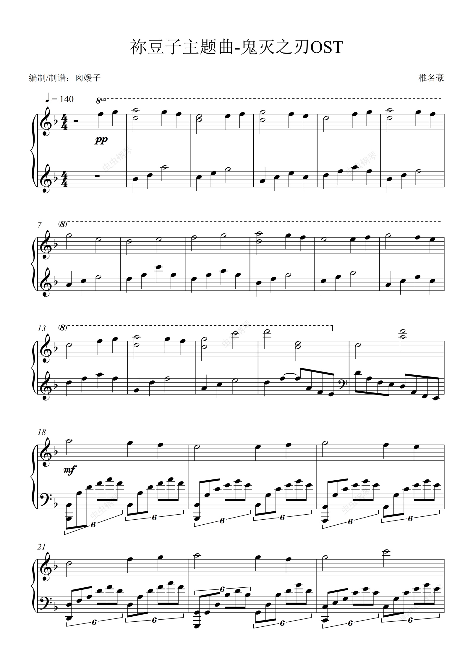 钢琴谱:鬼灭之刃OST - 祢豆子主题曲  禰豆子への想い【极限还原】