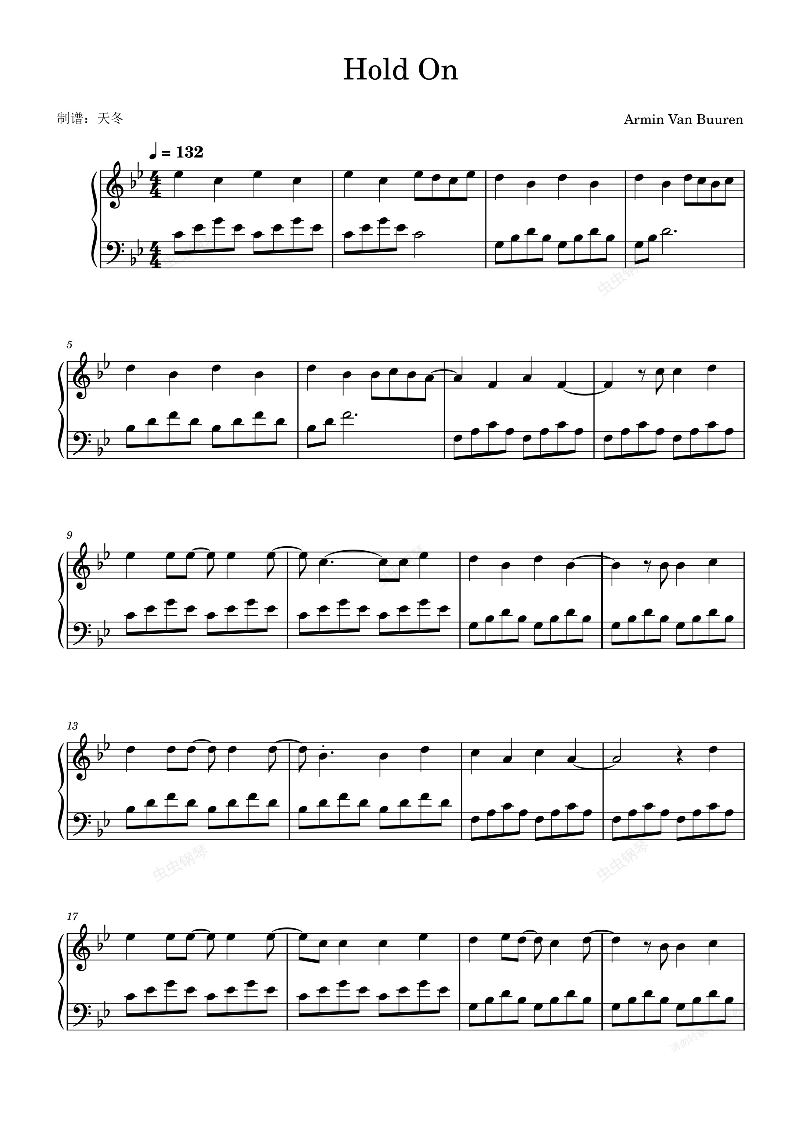 钢琴谱:Hold On