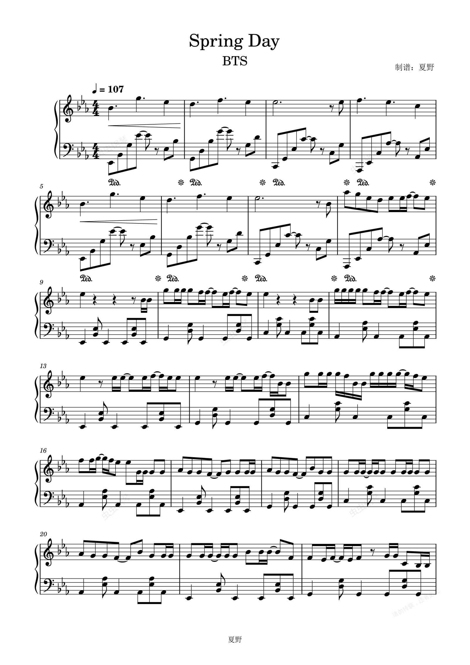 钢琴谱:SpringDay春日- BTS防弹少年团【原调】