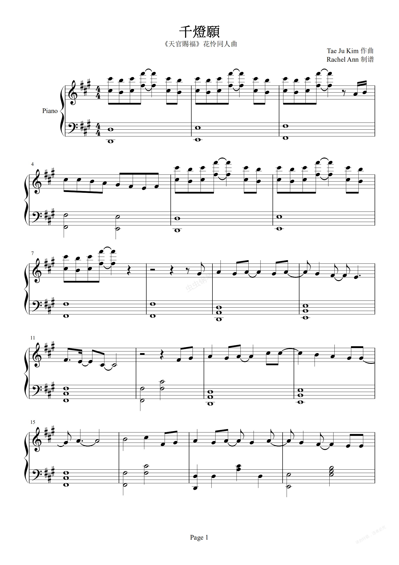 钢琴谱:千灯愿 -《天官赐福》花怜同人曲 翻自Ace组合